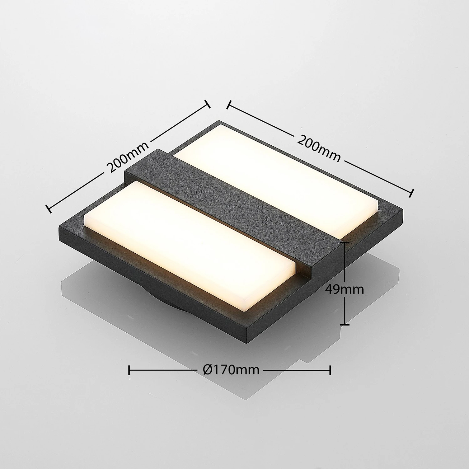 Die LED-Außenwandleuchte Gylfi ist mit IP65 bestens für die Verwendung im Freien geeignet. Die dunkelgraue Oberfläche des Metalls lässt die Leuchte sehr edel aussehen. Der weiße Diffusor besteht aus Polycarbonat und wird von einem Metallsteg in der Mitte unterbrochen. Aufgrund des Diffusors wird das Licht blendfrei und somit angenehm abgegeben.