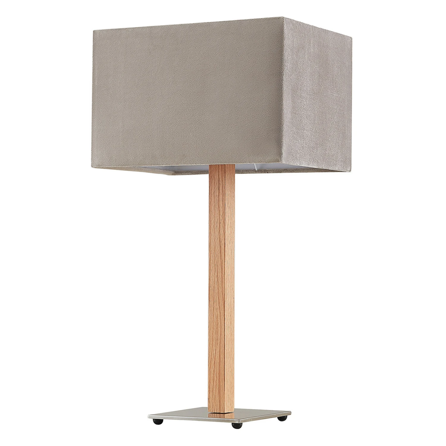 Gemütliche Tischleuchte Heily mit eckigem, grauem Textilschirm