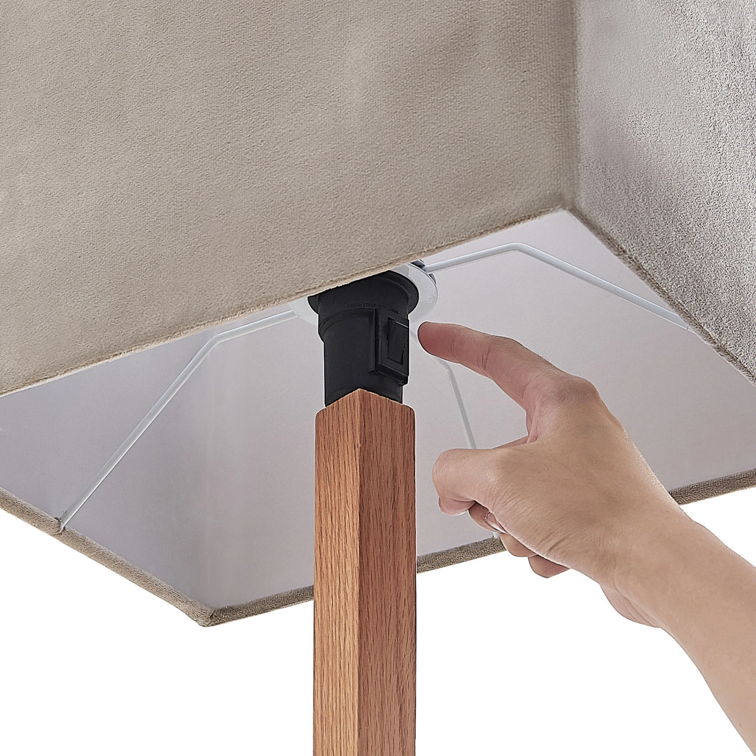Heily vereint attraktive Eichenholz-Elemente mit grauem Textil und verbreitet mit diesem stimmigem Kontrast eine gemütliche Atmosphäre. Der eckige Leuchtenschirm umgibt ein einzusetzendes Leuchtmittel, dessen Wahl auf die persönliche Bedürfnisse angepasst werden kann, sodass eine passende Lichtfarbe und Lichtintensität generiert wird. Die Tischlampe Heily findet ihren perfekten Platz in einem Wohnzimmer oder einem Schlafzimmer und eignet sich hervorragend für eine Akzentbeleuchtung eines Tisches oder einer Kommode.