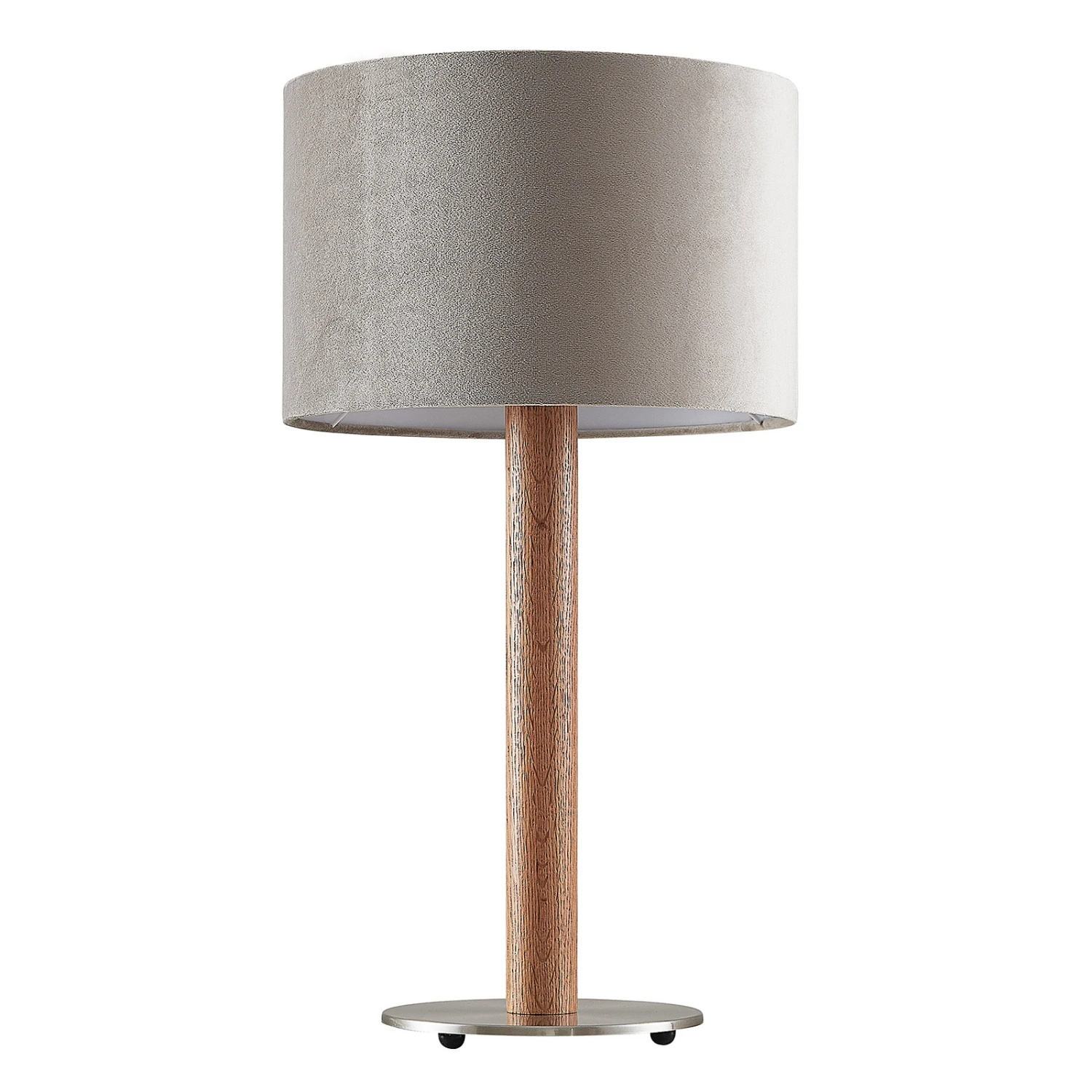 Heily verbreitet ein skandinavisches Flair innerhalb der Inneneinrichtung. Ihr Gestell besteht aus Eisen und Eichenholz und trägt einen zylinderförmigen Leuchtenschirm aus grauem Textil. Dieser Schirm kann mit entsprechenden Leuchtmitteln bestückt werden, sodass die Lichtfarbe an die persönlichen Bedürfnisse angepasst werden kann. Im Inneren besitzt die Tischlampe Heily einen Schalter an ihrer Fassung, über den sie ein- und ausgeschaltet werden kann. Die kontrastreiche Tischleuchte findet ihren perfekten Platz auf einem Tisch oder auf einer Kommode im Wohnzimmer oder Schlafzimmer.