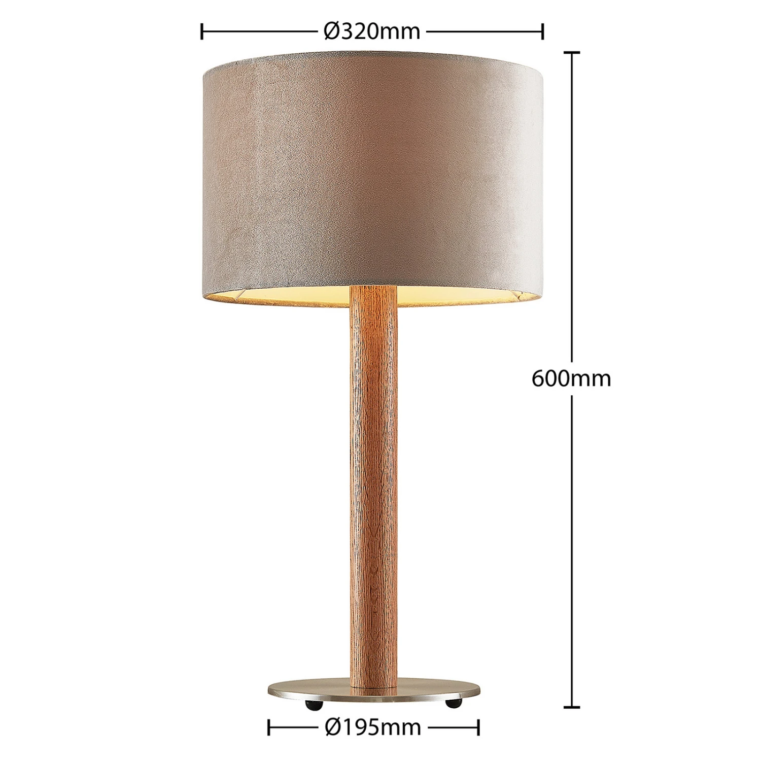 Tischleuchte Heily in skandinavischem Design aus Eisen, Eichenholz und Textil