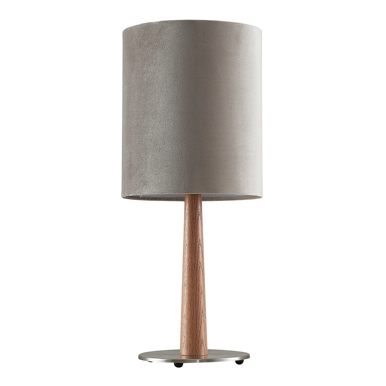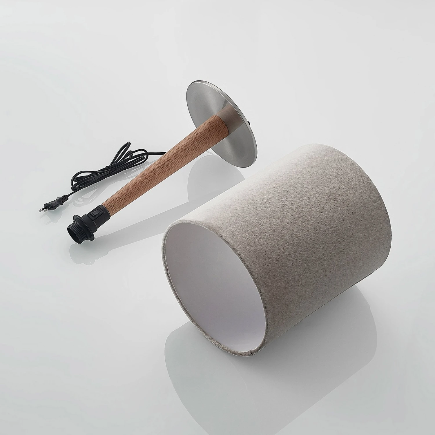 Tischleuchte Heily mit grauem Leuchtenschirm aus Textil in zylindrischer Form