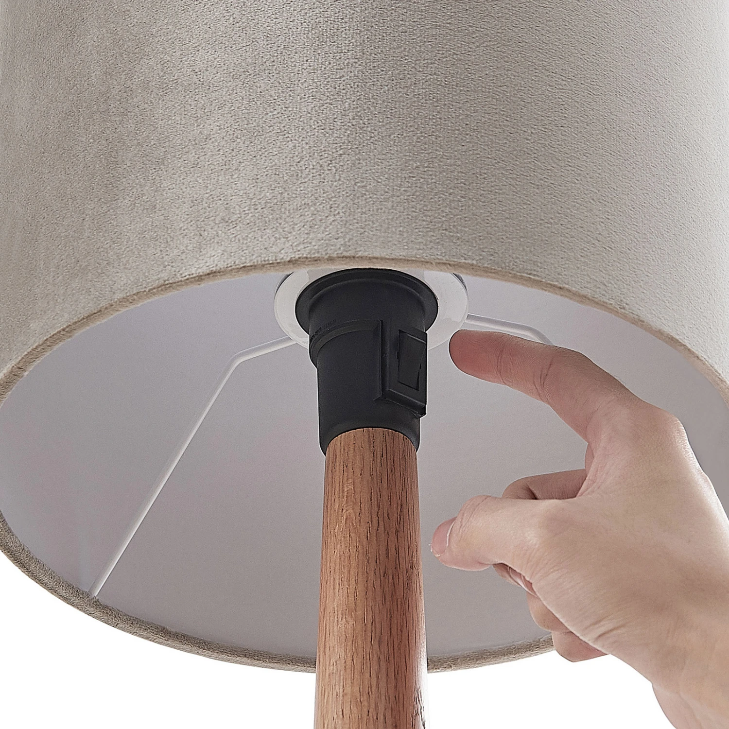 Die Tischlampe Heily besitzt ein attraktives, skandinavisches Design aus Eichenholz, Eisen und Textil. Sie eignet sich hervorragend für eine Akzentbeleuchtung auf einem Tisch oder einer Kommode und verbreitet ein skandinavischen Ambiente im Innenbereich. Ihr Gestell trägt einen zylindrischen Leuchtenschirm, der sich in grauer Farbe präsentiert und mit entsprechenden Leuchtmitteln bestückt werden kann. Die Wahl nach dem Leuchtmittel ermöglicht die Anpassung der Lichtfarbe an die persönlichen Bedürfnisse. Die Tischleuchte Heily findet ihren perfekten Platz in einem Wohnzimmer oder einem Schlafzimmer.