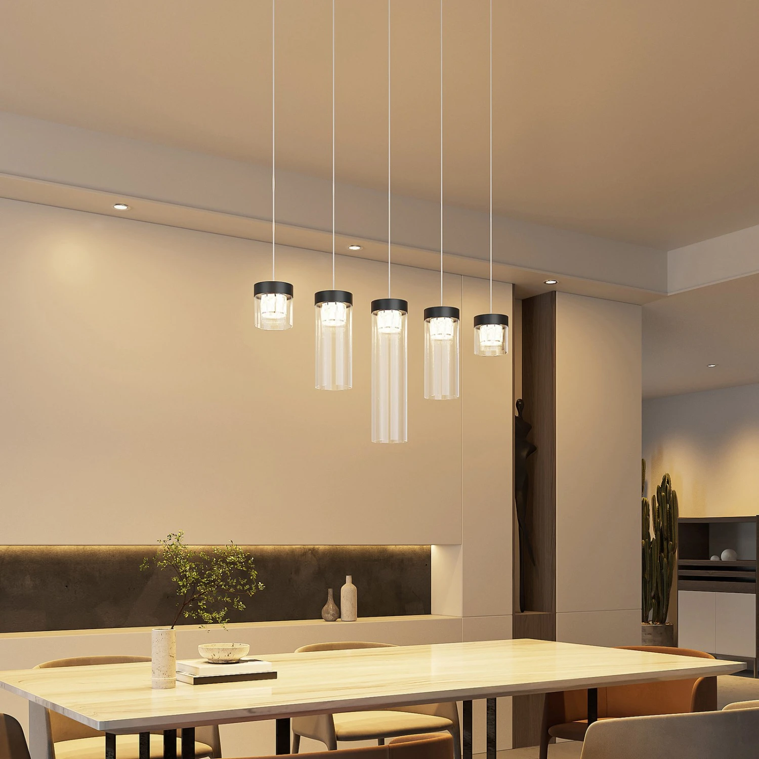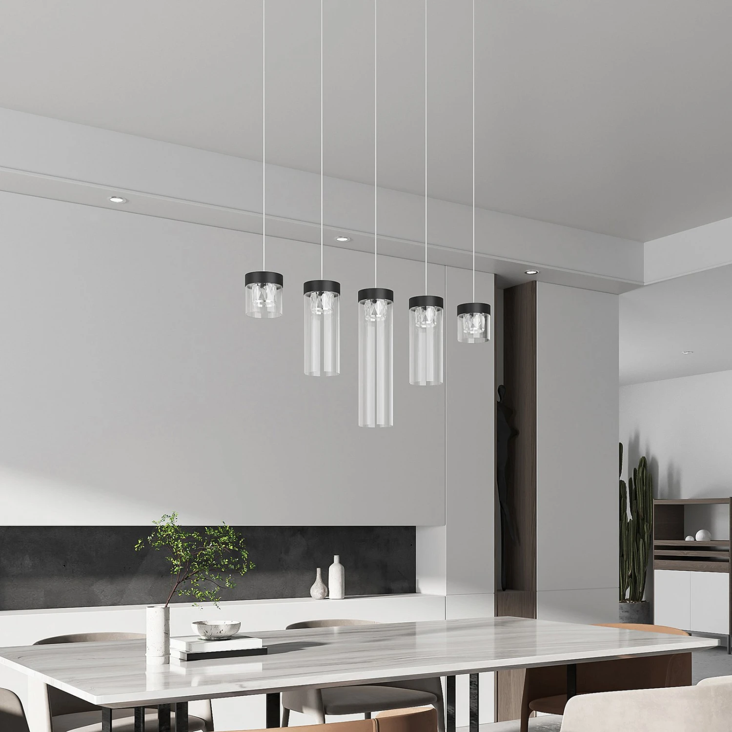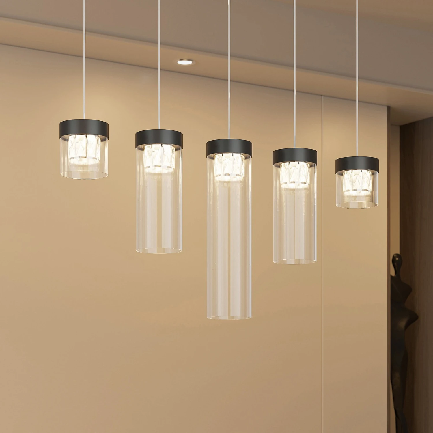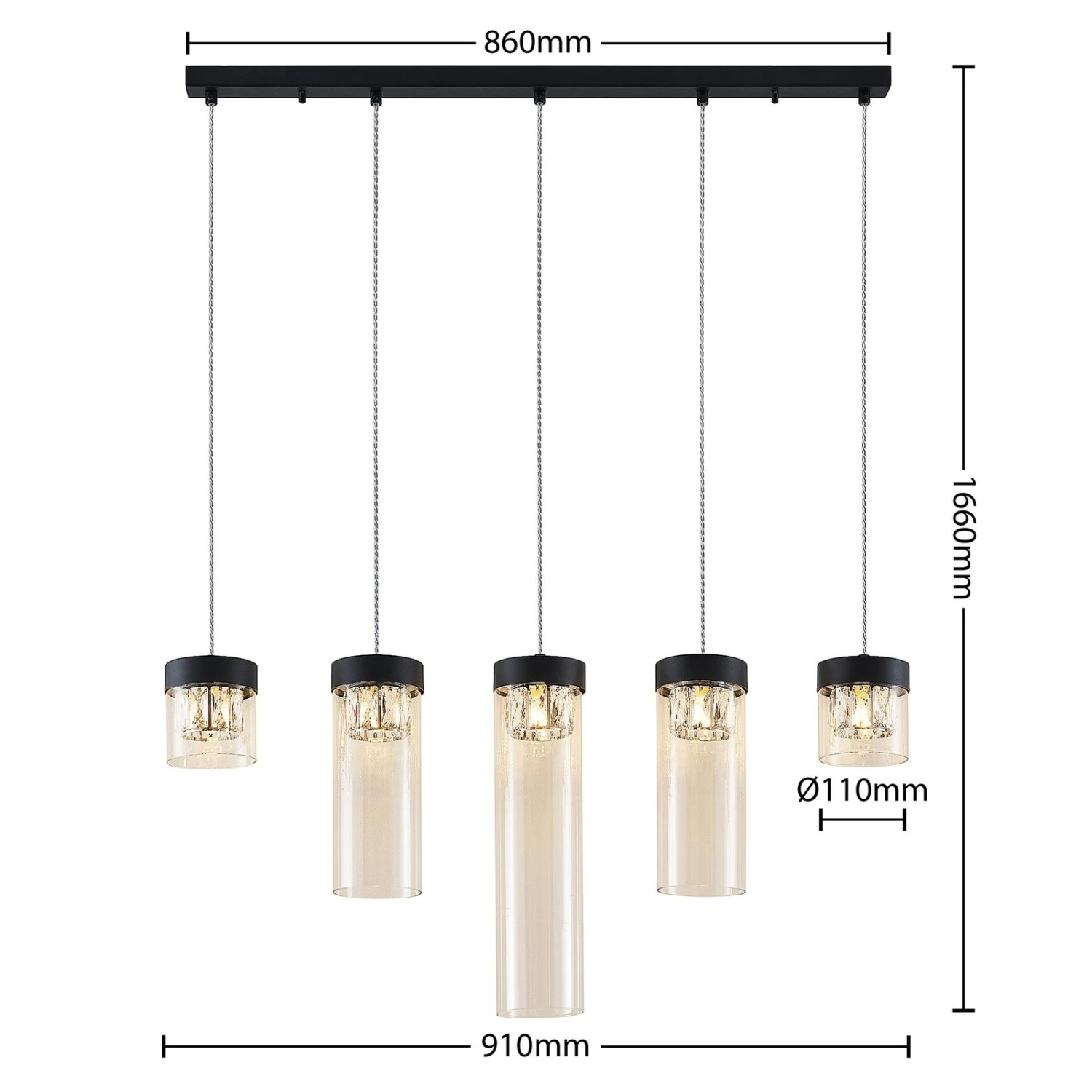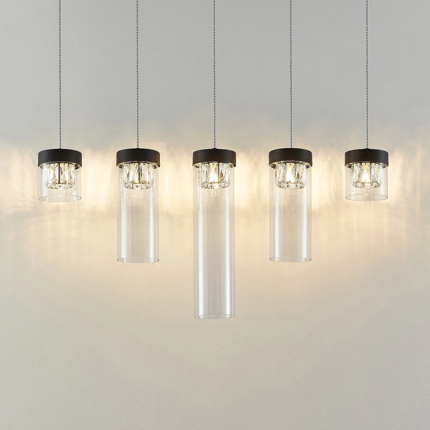 Hängeleuchte Imanu mit sechs Glasschirmen bietet eine gute Ausleuchtung