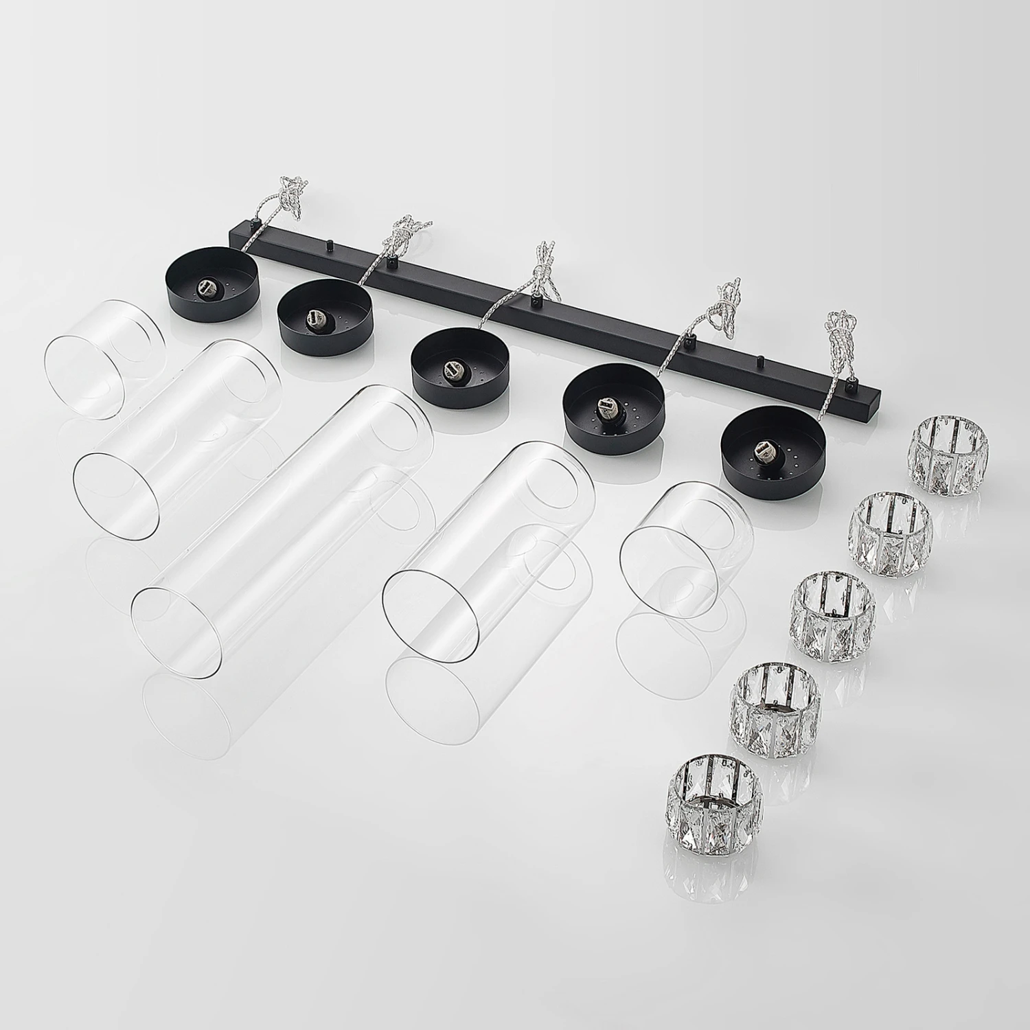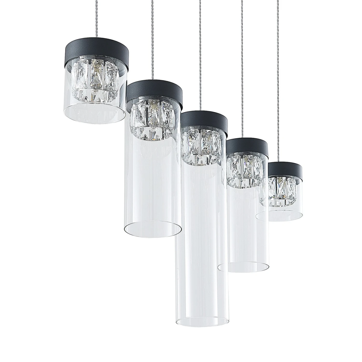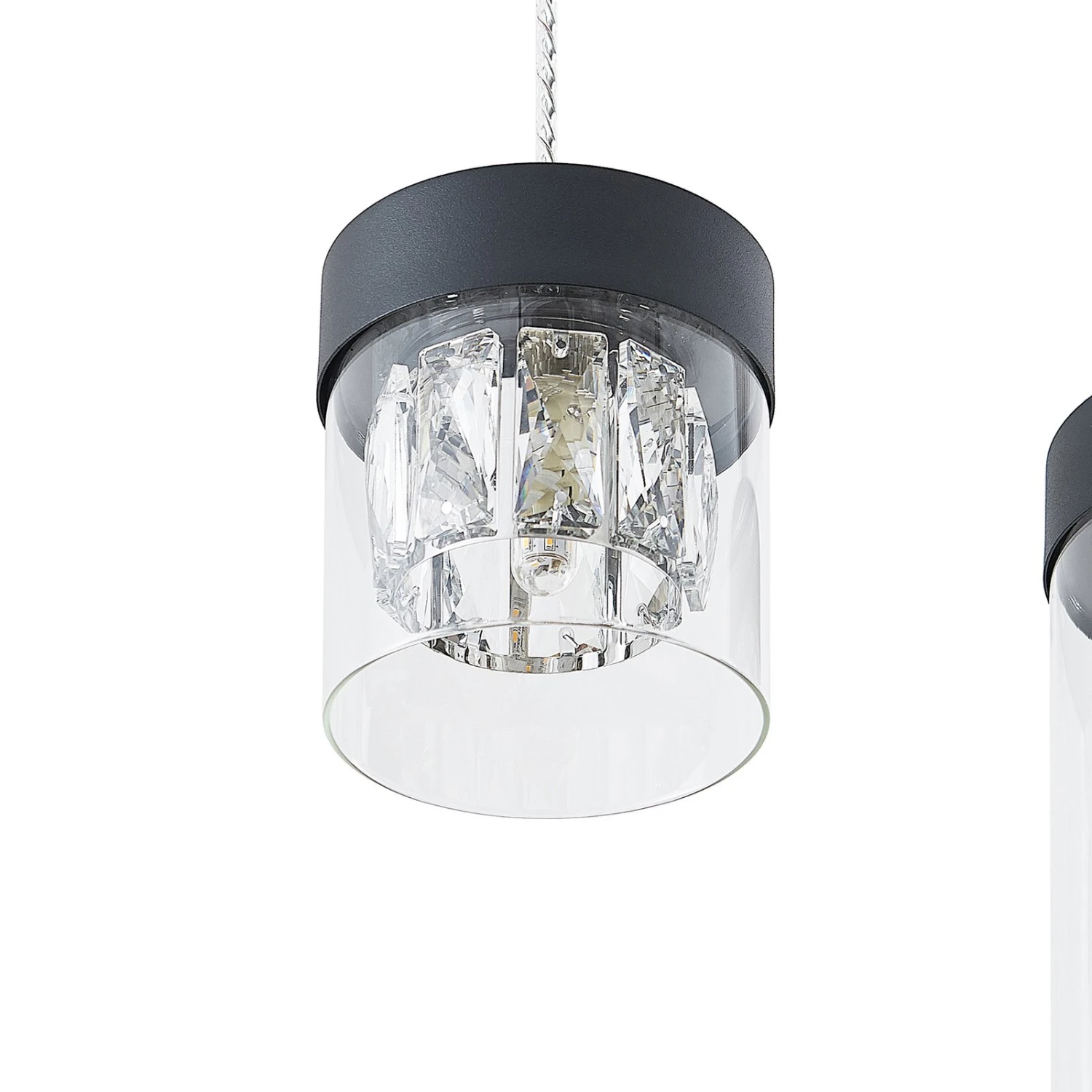 Die Leuchtenschirme hingegen wurden aus transparentem Glas hergestellt und besitzen unterschiedliche Höhen, während im Inneren funkelnde Kristalle einen edlen Abschluss des Gesamtdesigns bieten.. Dies verleiht der Leuchte Imanu einen individuellen Look, der sich sowohl im eigenen Zuhause als auch im gewerblichen Bereich sehen lassen kann. Die Wahl der einzusetzenden Leuchtmittel liegt beim Nutzer, wobei sich hier vor allem dekorative Filament-Lampen empfehlen, da sie den besonderen Charakter dieser Leuchte untermalen.