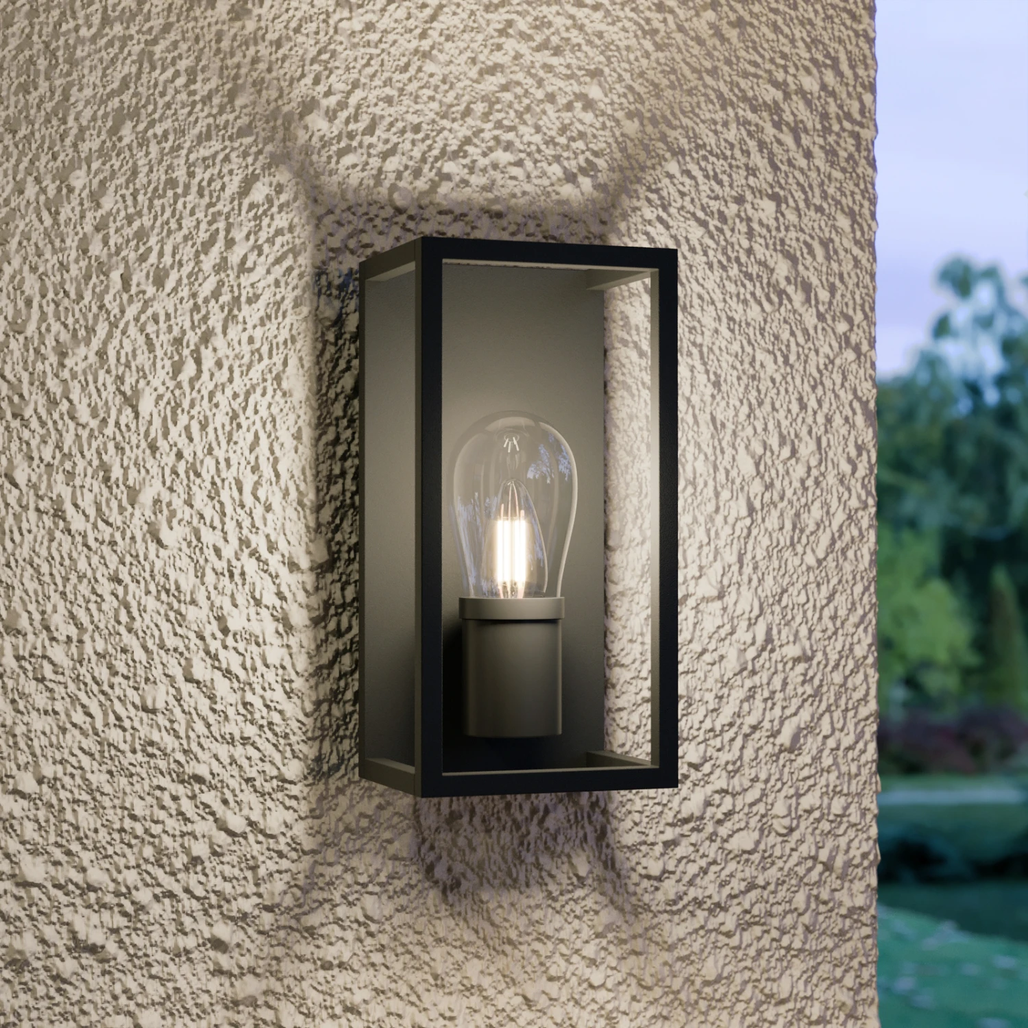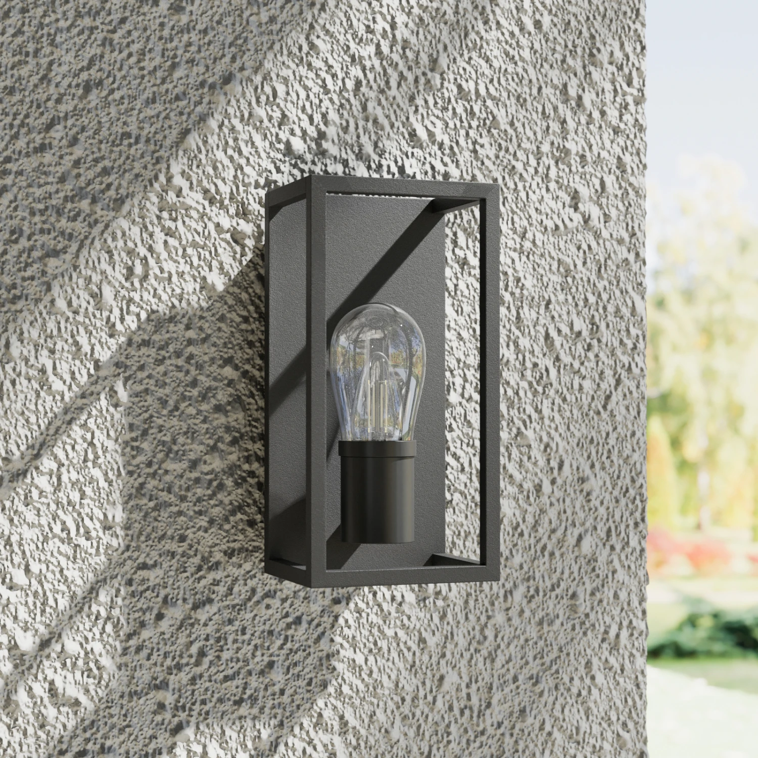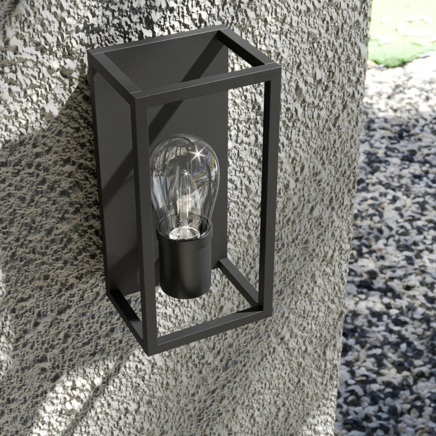 Der Rahmen der Außenwandleuchte Irmgart ist aus Aluminium gefertigt und mit einer E14-Fassung ausgestattet. Das Leuchtmittel ist von einem Glasschirm umgeben, der von der Form her an eine klassische Glühbirne erinnert und der Leuchte das gewisse Extra verleiht. Gleichzeitig schützt das Glas das Leuchtmittel im Inneren vor Wind und Wetter. Mit ihrer minimalistischen Erscheinung passt Irmgart besonders gut zu einer modernen Umgebung und wird hier zu einem wahren Highlight an der Hauswand.