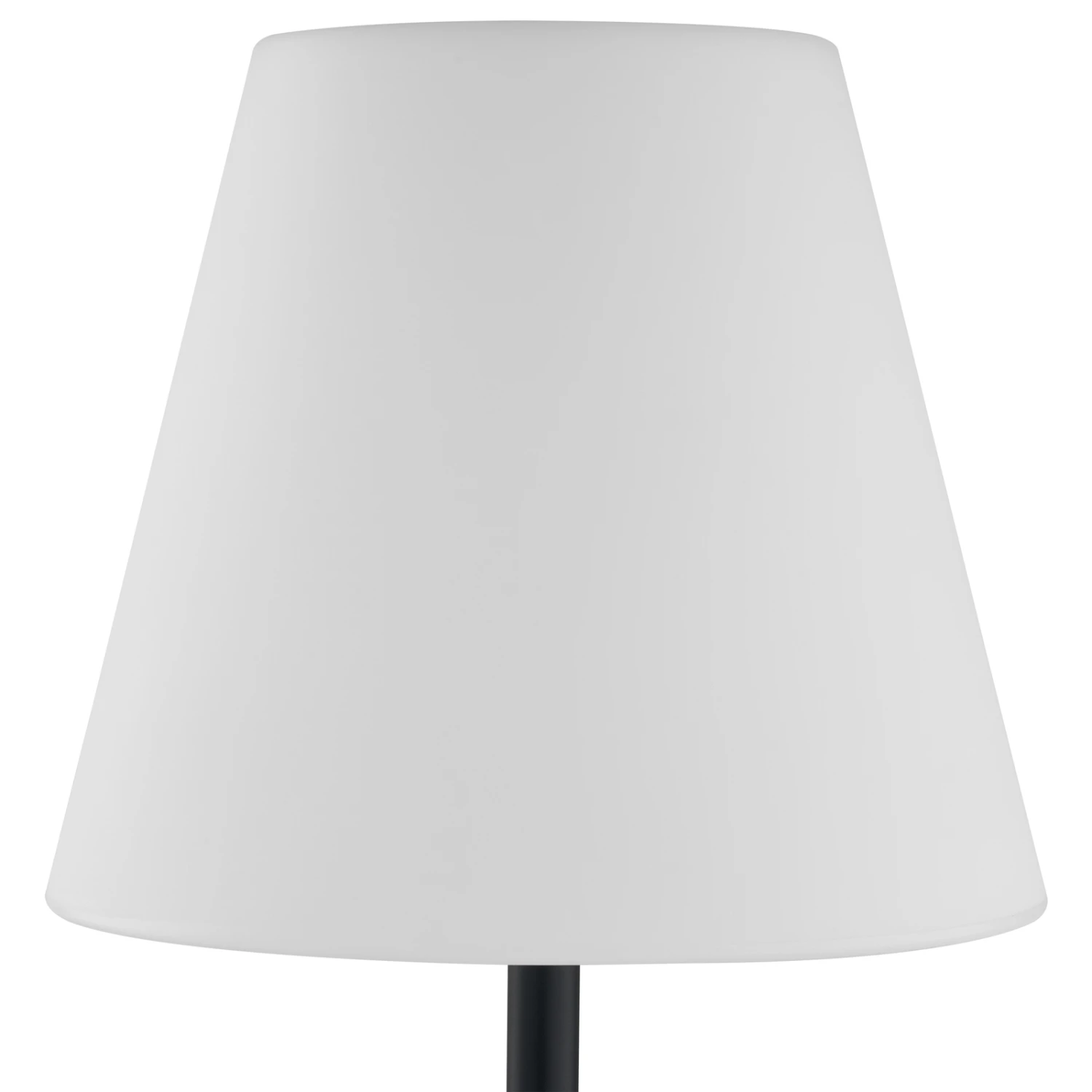 Schlanke Terrassenleuchte Jaimy mit weißem Leuchtenschirm