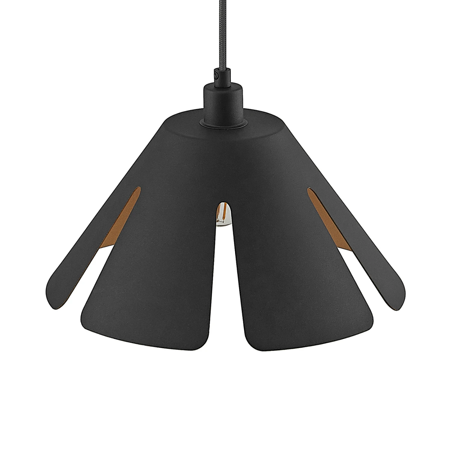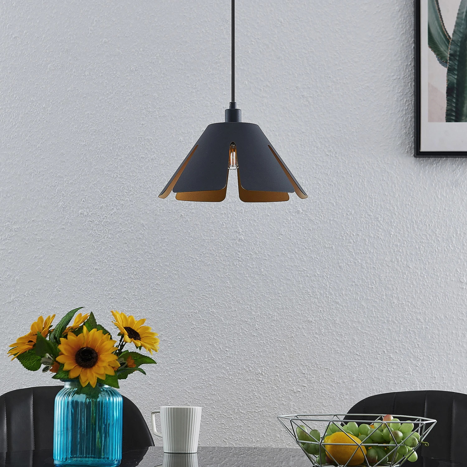 Einflammige Designer-Hängeleuchte Jemmily mit schwarz-goldenem Schirm mit seitlichen Einkerbungen
