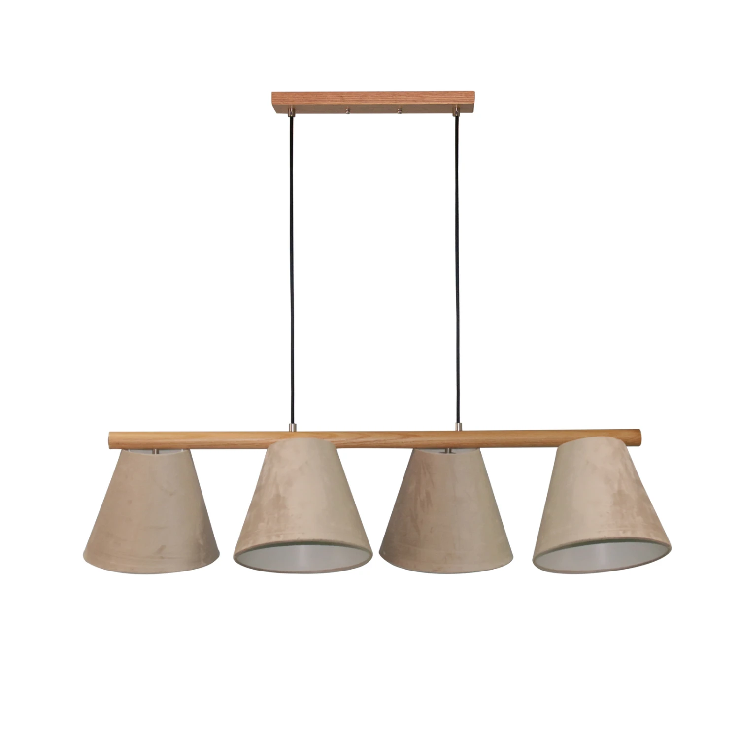 Vierflammige Pendelleuchte Jinda mit Eichenholz und grauen Wollfilzschirmen