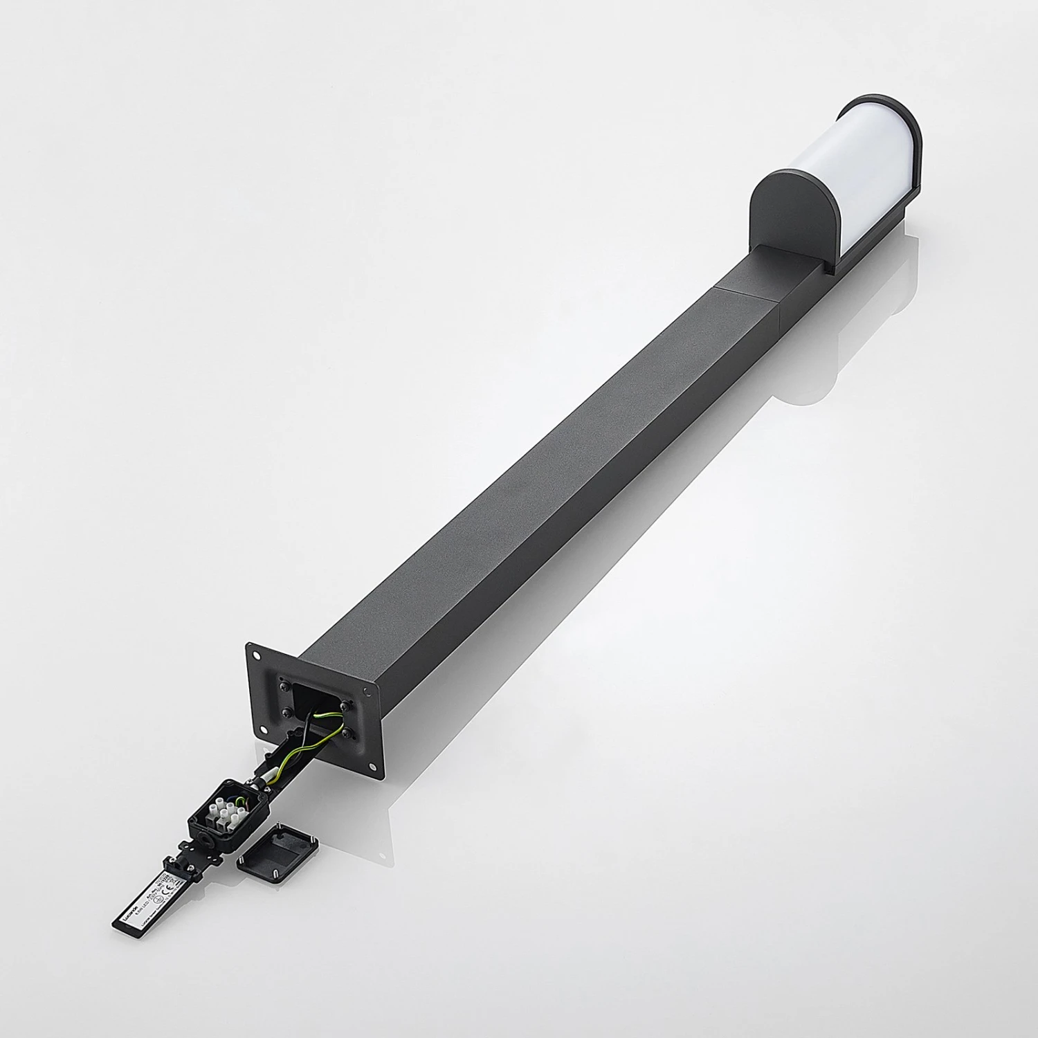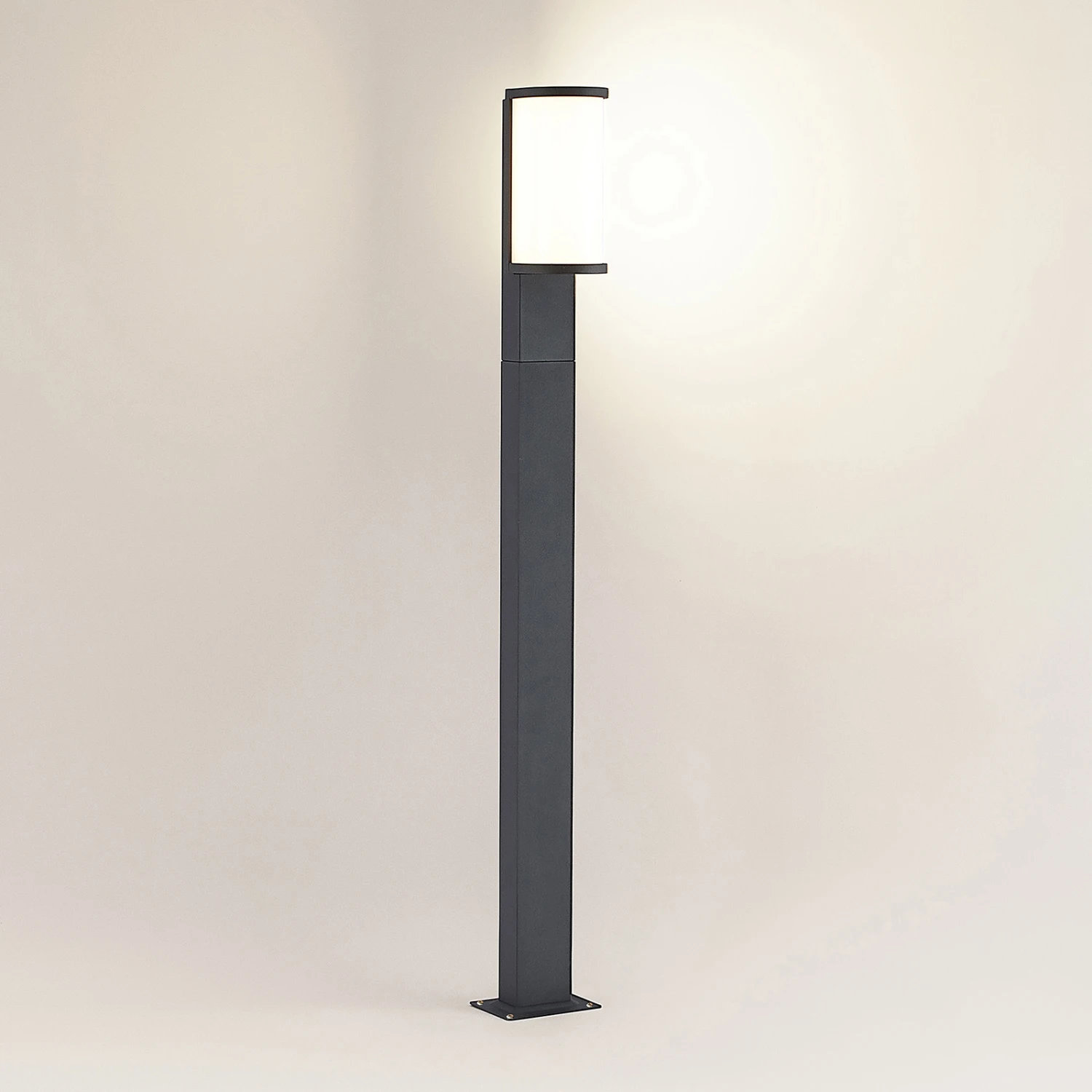 Jokum ist eine Wegeleuchte, die detailreduziert und zeitgemäß daherkommt, so dass das Design der Leuchte sehr gut zu einer modernen Umgebung passt. Da sie mit LEDs ausgestattet ist, wird die Leuchte auf energiesparende Weise zum Leuchten gebracht. Das Aluminiumgestell ist robust und hat eine dunkelgraue Oberfläche, der Einsatz im Außenbereich ist dank der hohen Schutzart ohne Bedenken möglich und ein weißer Diffusor aus Kunststoff bewirkt eine möglichst weiche, blendfreie Verteilung des Lichts.
