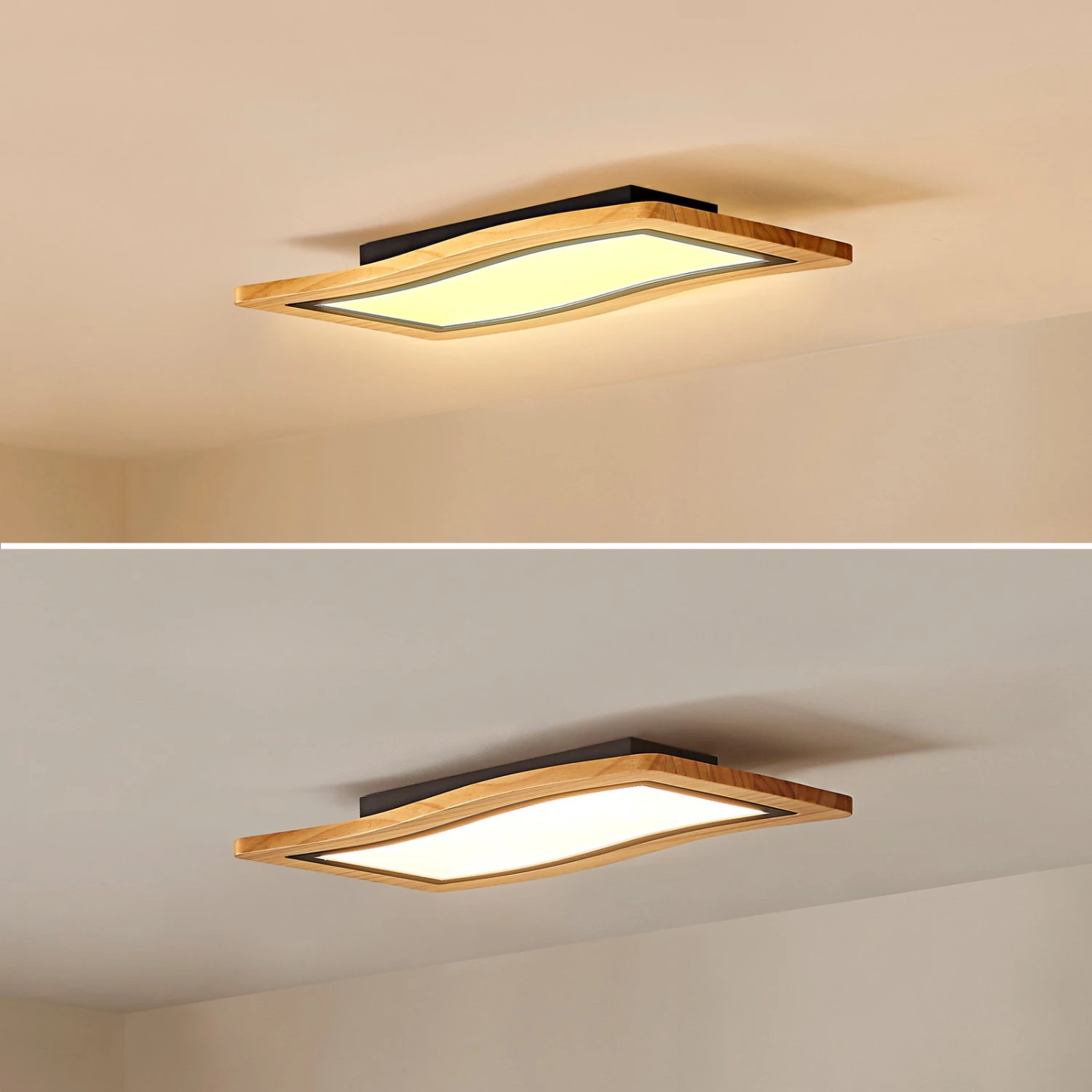 Auch in Ihrer Einrichtung macht diese Deckenlampe ganz bestimmt eine prima Figur. Aufgrund des schönen Designs harmoniert die Deckenlampe mit beinahe jedem Einrichtungsstil und ist ein Highlight in jedem Wohnraum. Die warmweiße Farbe des Lichts schenkt Ihrem Wohnbereich eine tolle Atmosphäre. Die Deckenlampe bietet die Möglichkeit, die Helligkeit mittels eines Lichtschalters nach Ihren Wünschen anzupassen. Sie hat die Farben Holz und Schwarz. Mit dieser Lampe wählen Sie erstklassige Lucande-Markenqualität. Egal, mit welchem Einrichtungsstil sie kombiniert wird, wird die Leuchte Ihrem Wohnraum einen persönlicheren Touch hinzufügen. Sie eignet sich hervorragend, um das Aussehen Ihrer Einrichtung perfekt abzurunden. Egal ob ein- oder ausgeschaltet: diese Leuchte wird überzeugen.