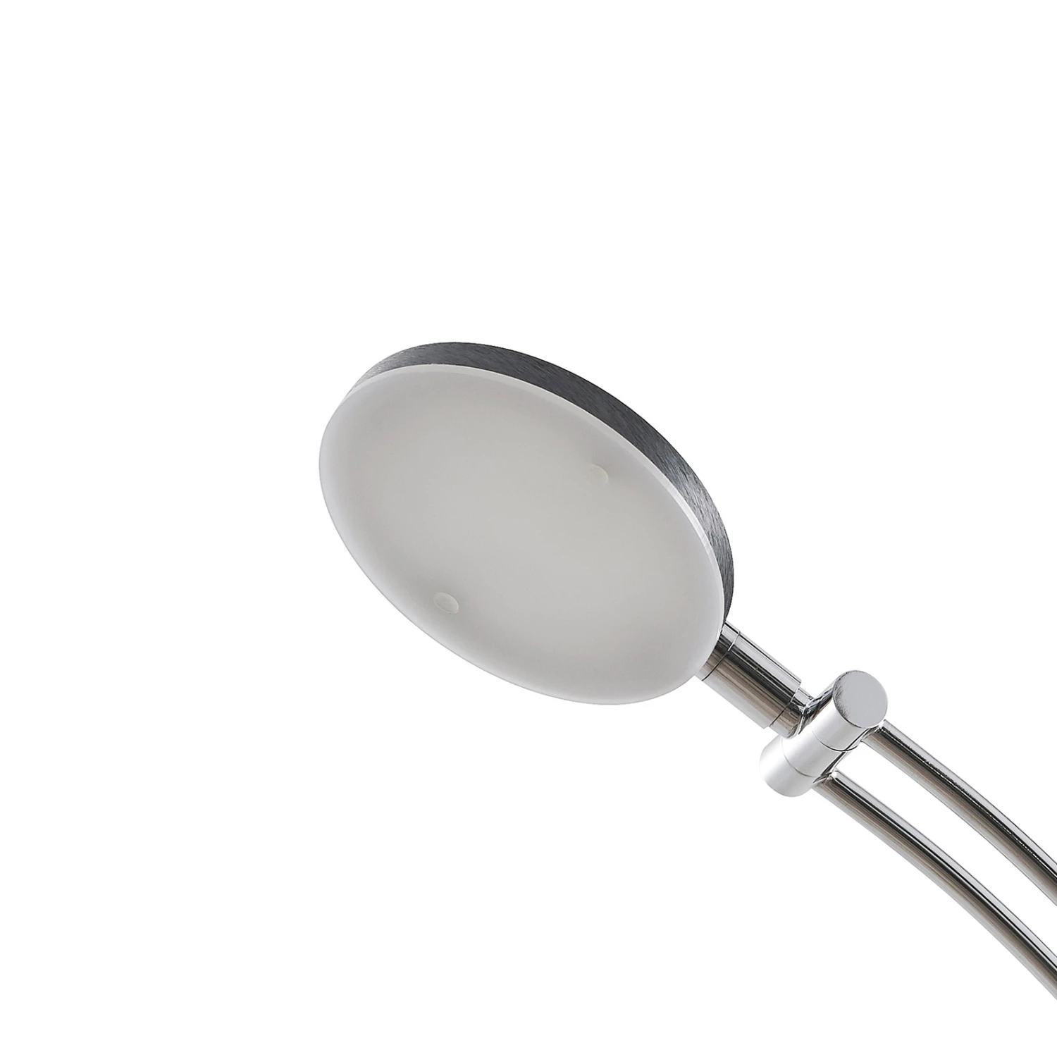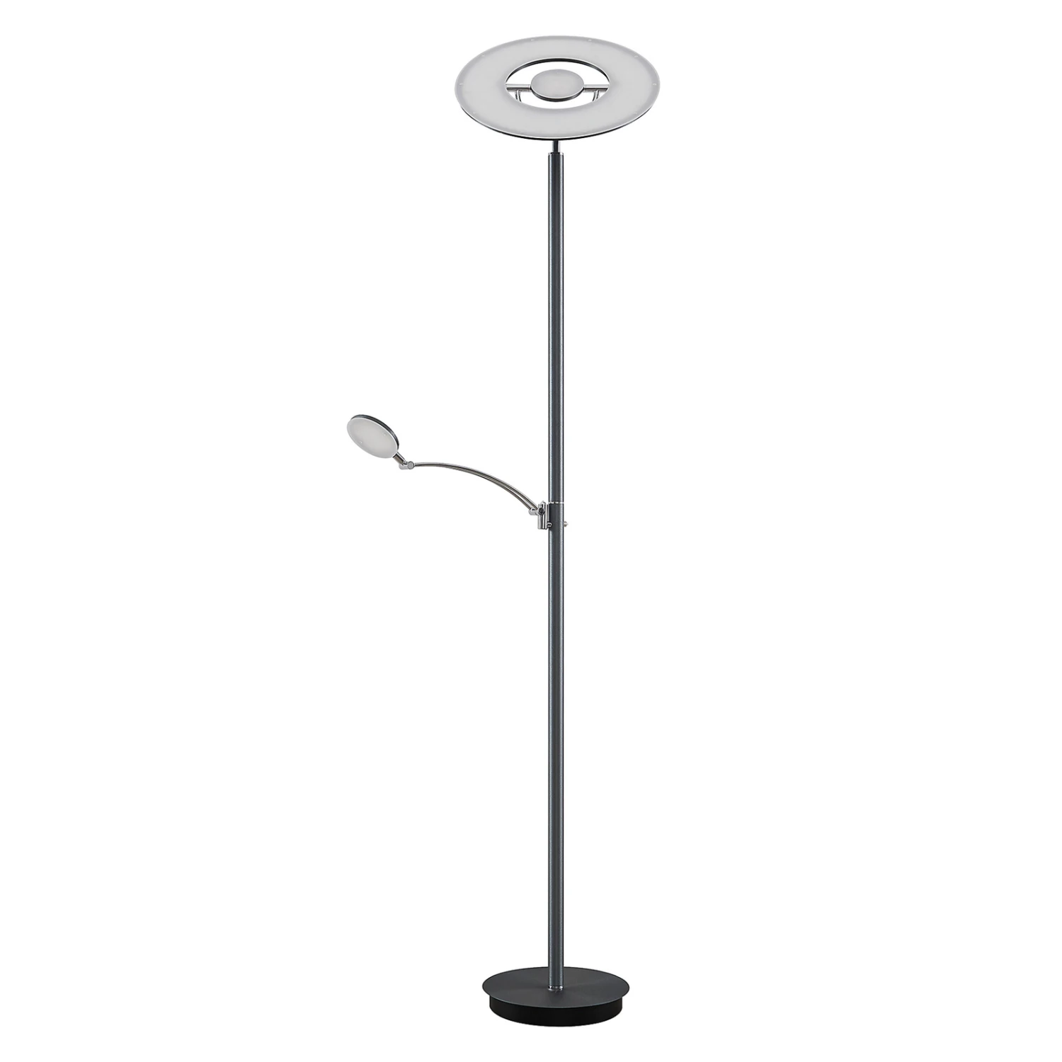Die LED-Stehlampe Journi vereint ein modernes Design mit praktischen Funktionen. Sie ist aus Aluminium und Eisen hergestellt und präsentiert sich in stimmigem Anthrazit und Chrom. Ihr eher schlichtes Design und die Farbgebung integrieren sich mühelos in moderne Einrichtungsstile und in das restliche Mobiliar. Neben der Hauptlichtquelle verfügt die Leuchte darüber hinaus über einen Lesearm, der für das abendliche Bücherlesen auf der Couch die perfekte Beleuchtung bietet. Außerdem können die festverbauten LEDs mit Hilfe eines Schalters gedimmt werden und ihre Lichtfarbe ändern.