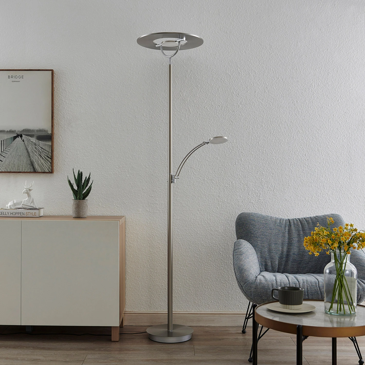 LED-Stehleuchte Journi aus Edelstahl und Eisen in Nickel