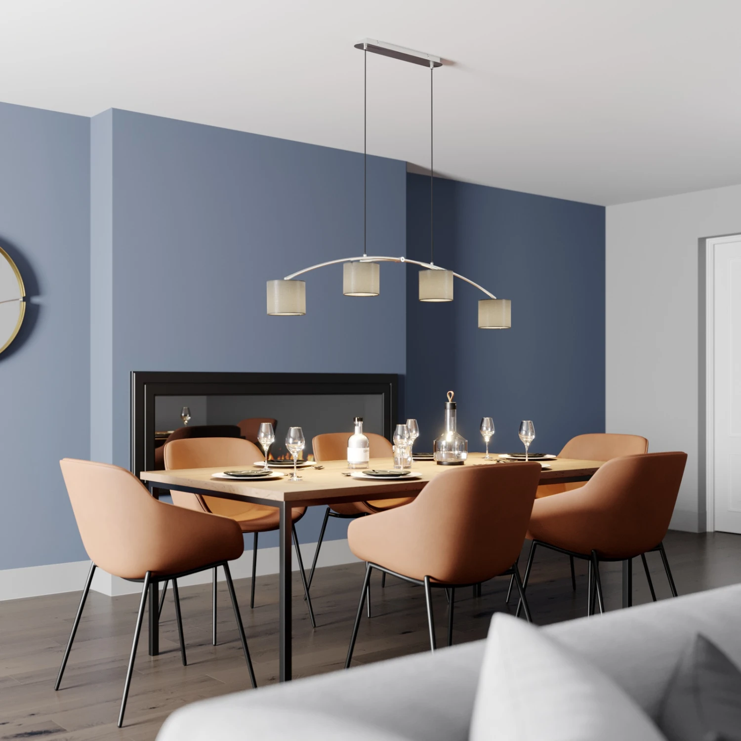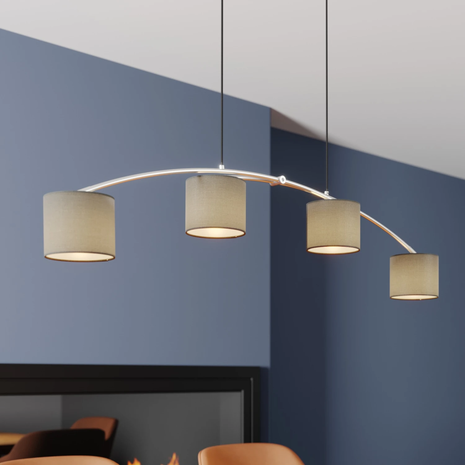 Elegante Stoff-Pendelleuchte Juljana mit vier Lampenschirmen – ideal für den Essbereich