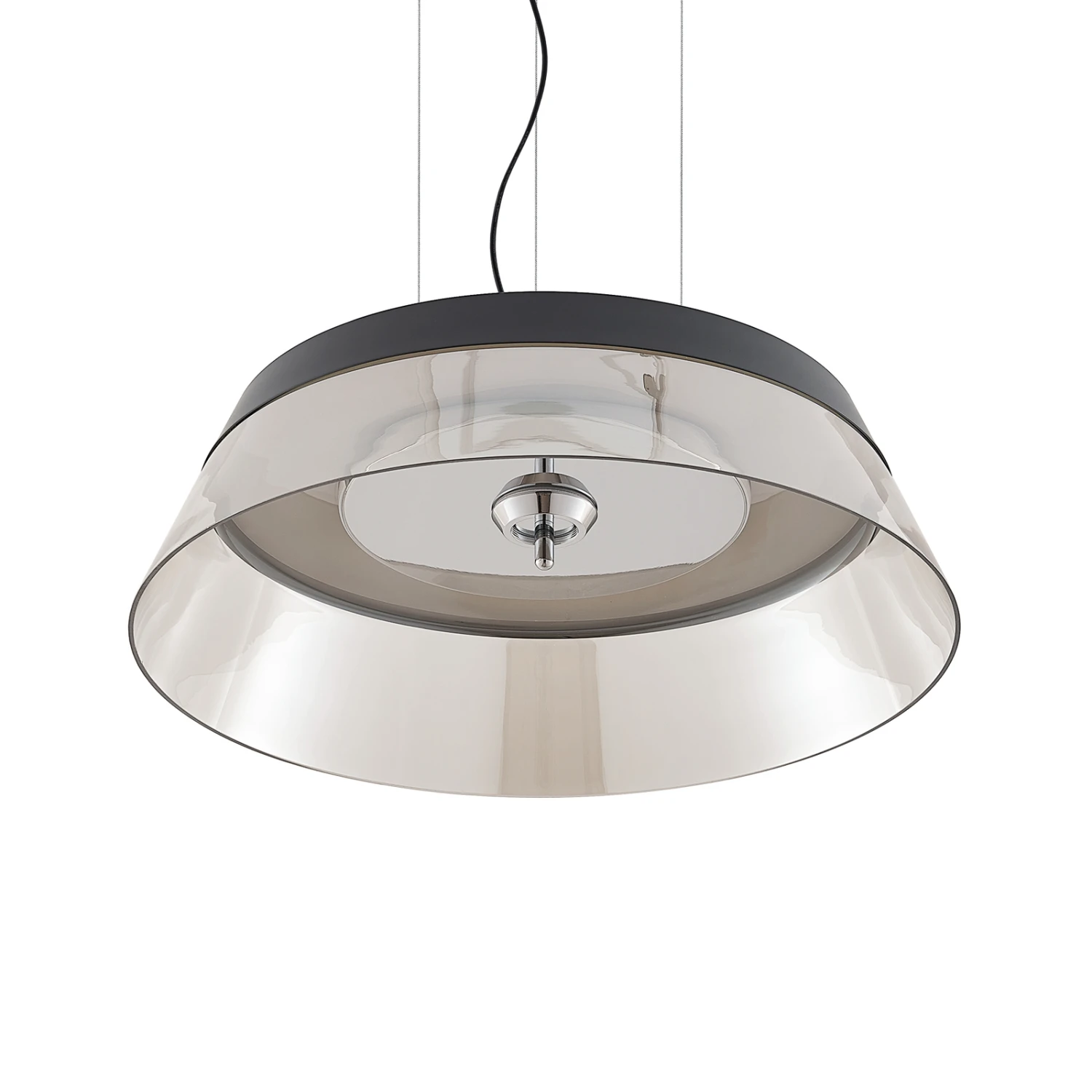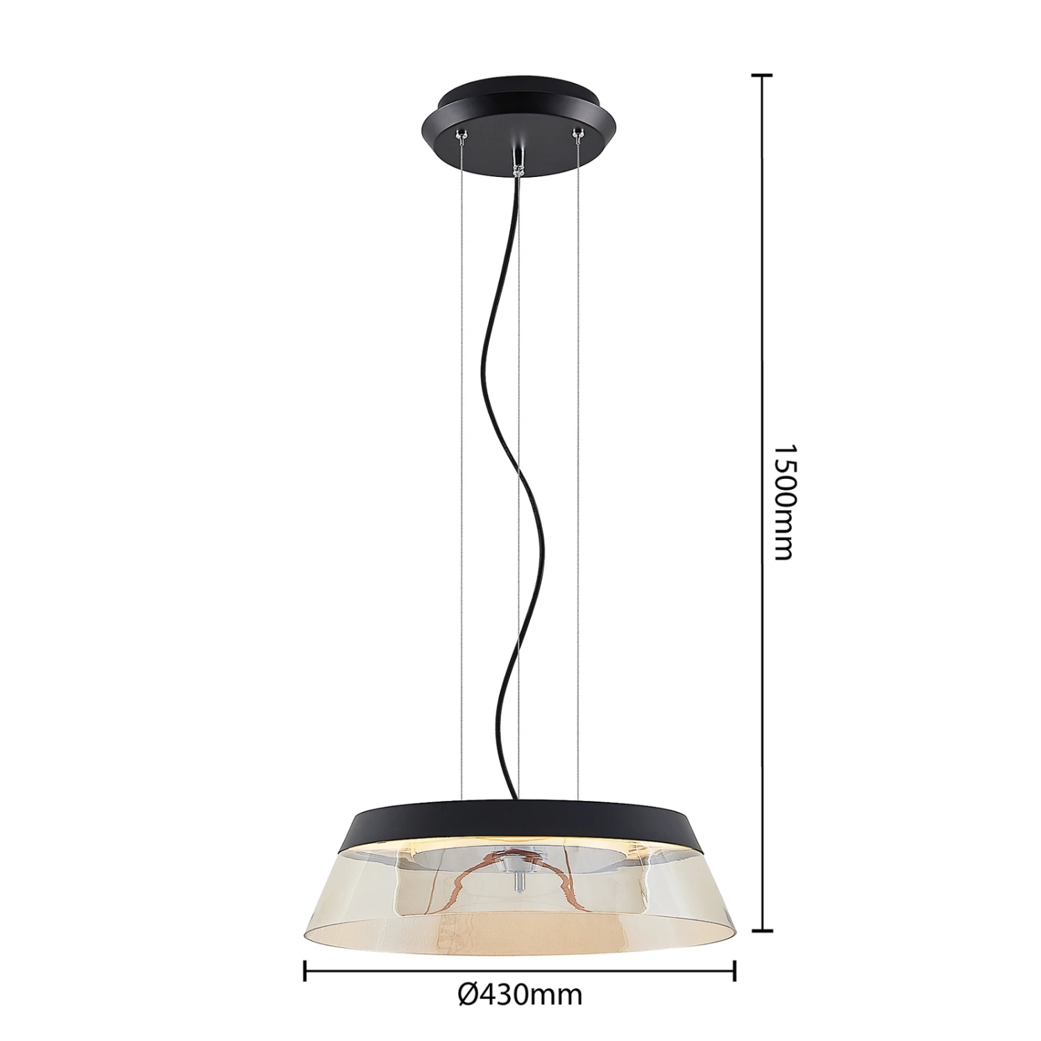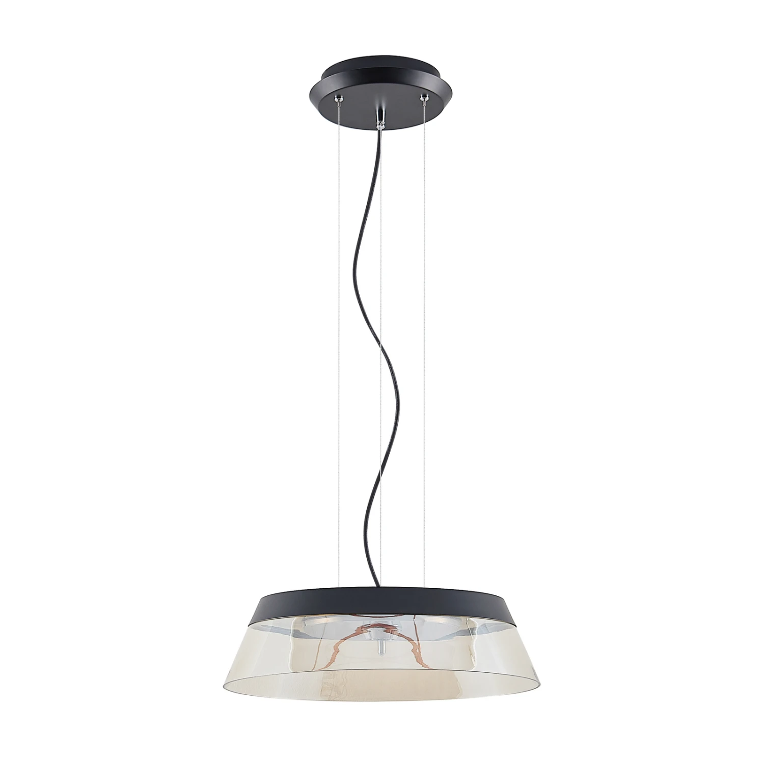 Dunkle LED-Hängeleuchte Jusanna mit einem cognacfarbenen Glasschirm als Blickfang