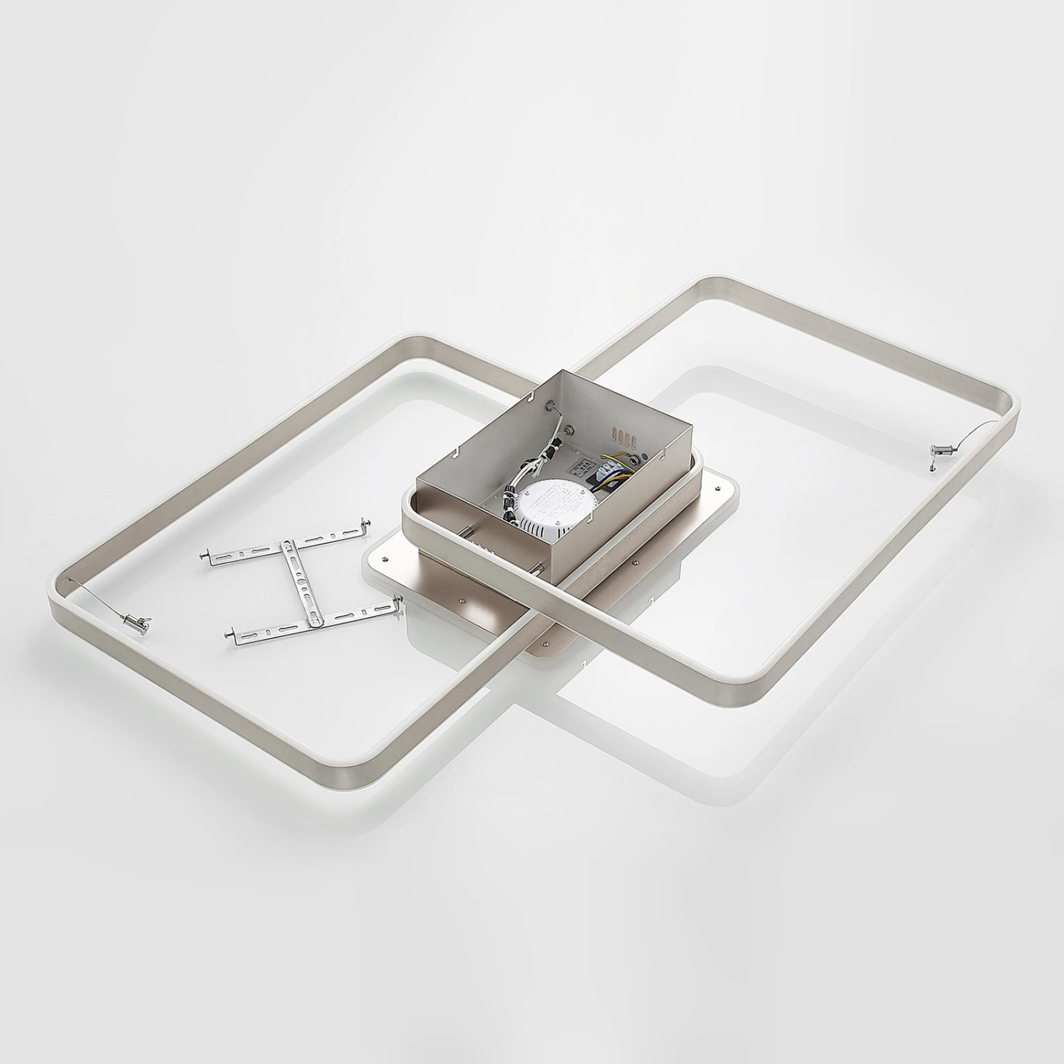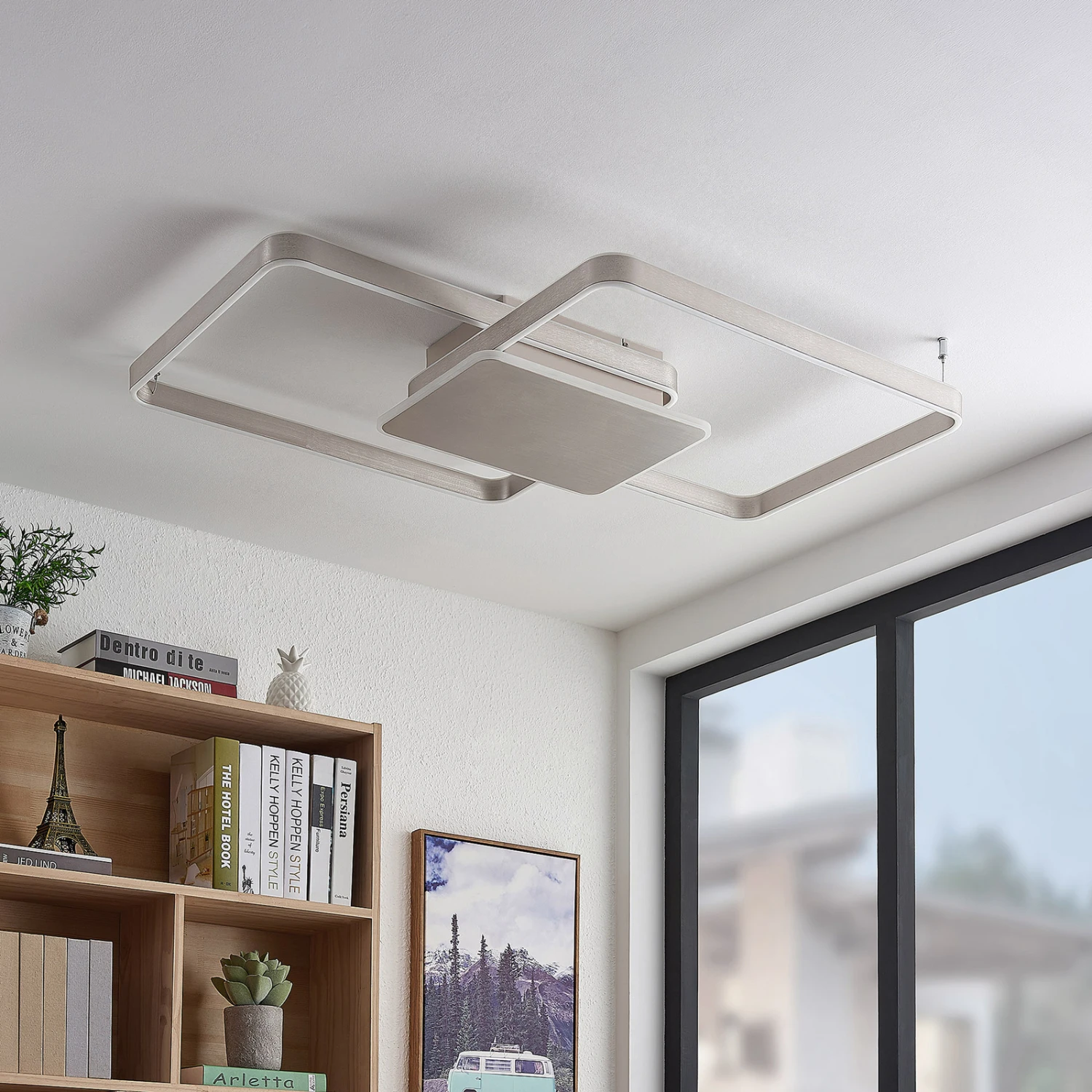 Dimmbare LED-Deckenleuchte Kadira mit Aluminiumrahmen in Nickel-Optik