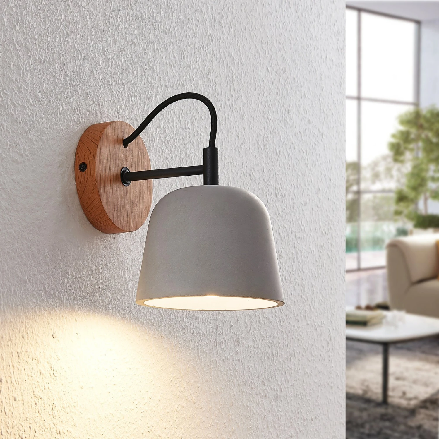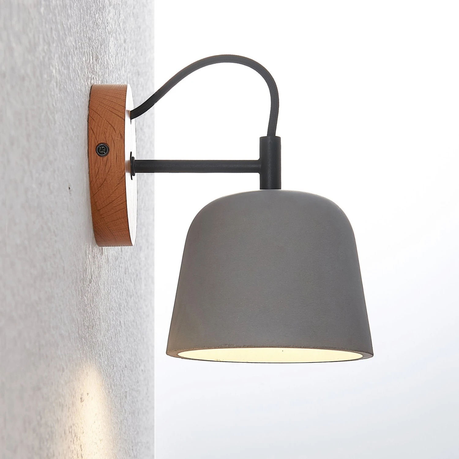 Die Wandlampe Kalinda dient als ideale Ergänzung von skandinavischen Wohnstilen, denn die Leuchte kombiniert einen Betonschirm mit einem runden Wandgestell aus hellem Eichenholz. So vereinen sich die warmtönige Ausstrahlung von Holz und das weitaus kühler wirkende Material Beton auf sehr ästhetische Weise. Da kommen schnell Assoziationen zu einem skandinavischen Wohnstil auf, der sich genau dadurch auszeichnet, dass eine klare Formensprache und gemütlich erscheinende Ausgangsmaterialien zu gleichen Teilen Verwendung finden. Stilvolle Akzentbeleuchtung für Wohn- und Schlafzimmer!