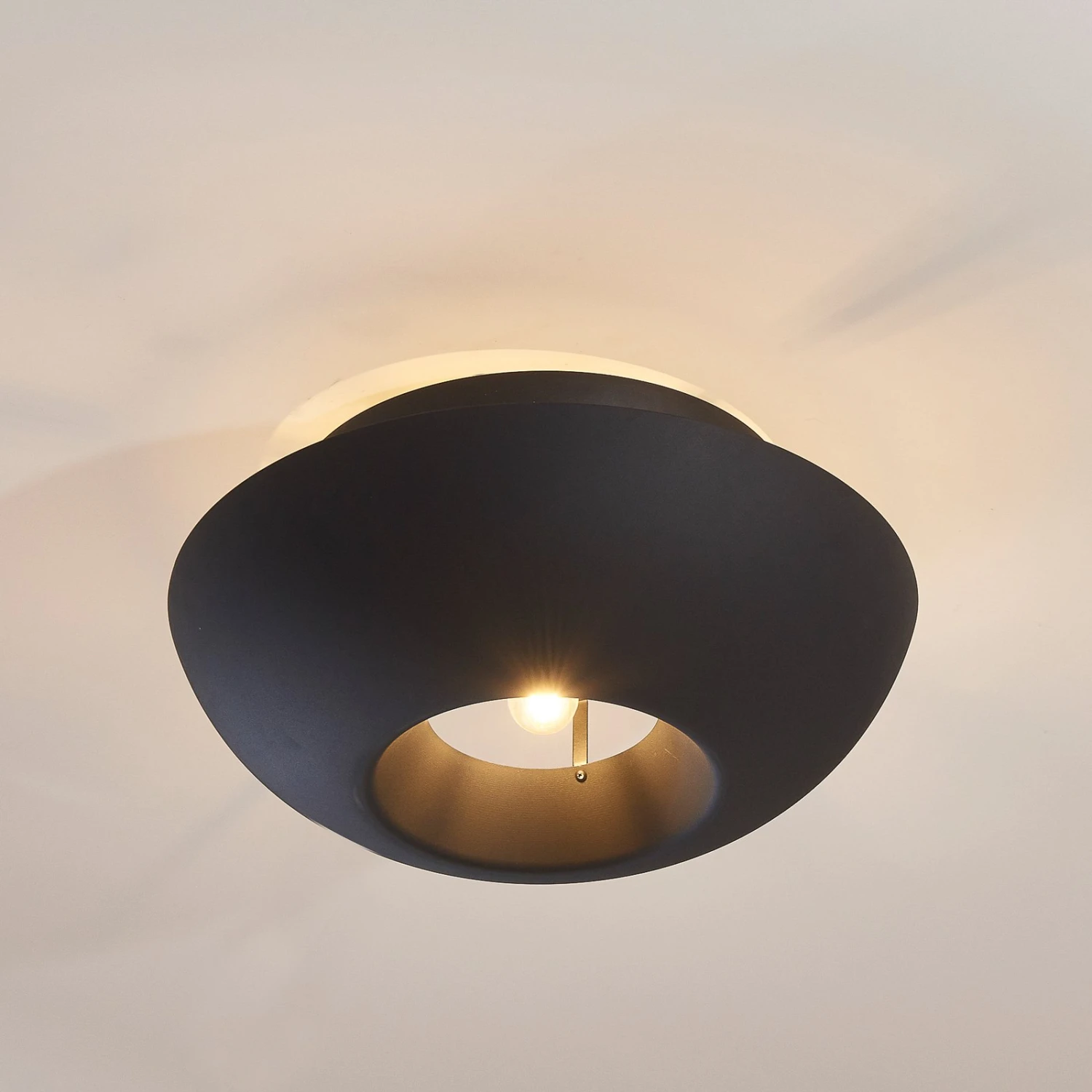 Schwarze Deckenleuchte Kellina mit einem stilvollen Doppelschirm