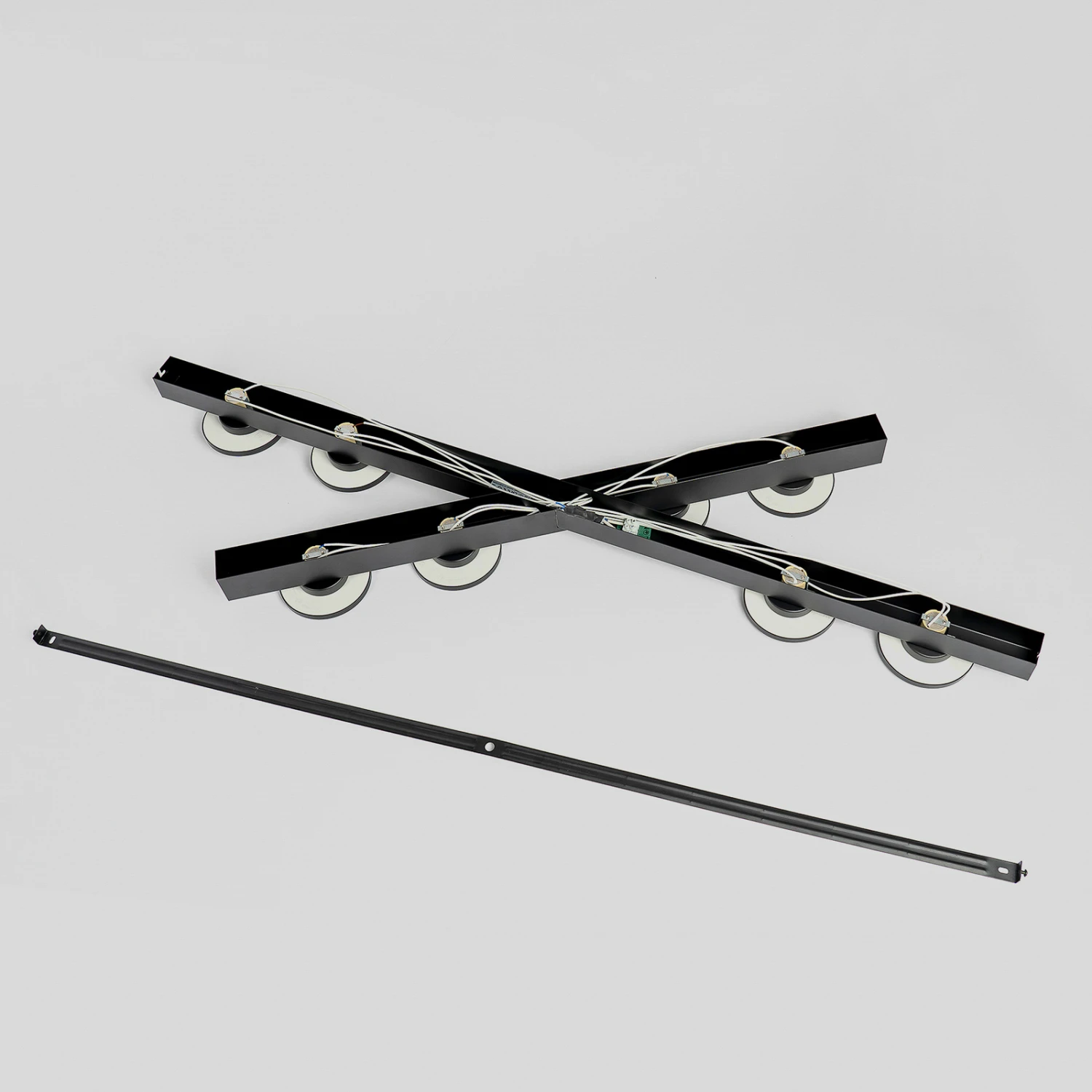 Achtflammige, gekreuzte Design-LED-Deckenleuchte Kellino in SchwarzAuch für Ihre vier Wände ist die formschöne Deckenlampe Kellino wunderbar geeignet. Die Deckenleuchte verbreitet Licht in einer wohnlichen warmweißen Farbtemperatur und passt ausgezeichnet in jedes Ihrer Zimmer. Sie überzeugt mit der Qualität des verwendeten Eisens und vervollständigt Ihr persönliches Einrichtungskonzept durch das moderne Design von Ingo Thiele. Holen Sie sich mit dieser Deckenleuchte Markenqualität von Lucande in Ihre vier Wände. Das Modell Kellino bietet Ihnen mit vier bequem auswechselbaren Leuchtmitteln optimales Licht. Außerdem verfügt die schwarze Deckenleuchte über GU10-Fassungen. Sie besticht nicht nur mit einem schönen Lichtspiel, sondern erfüllt auch eine dekorative Funktion.