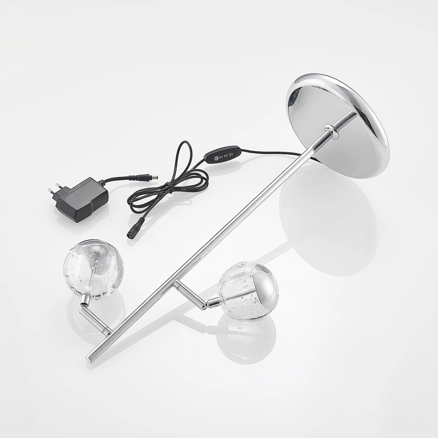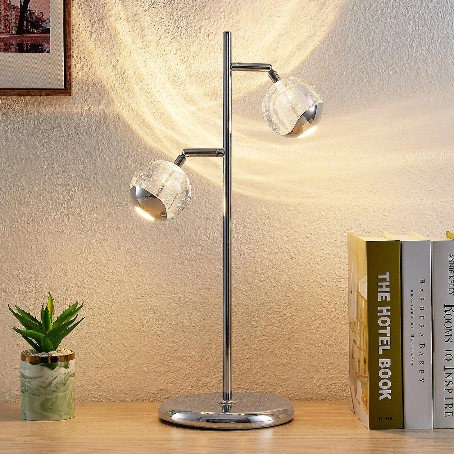 Zweiflammige LED-Tischlampe Kilio in glänzendem Chrom, per Schalter dimmbar