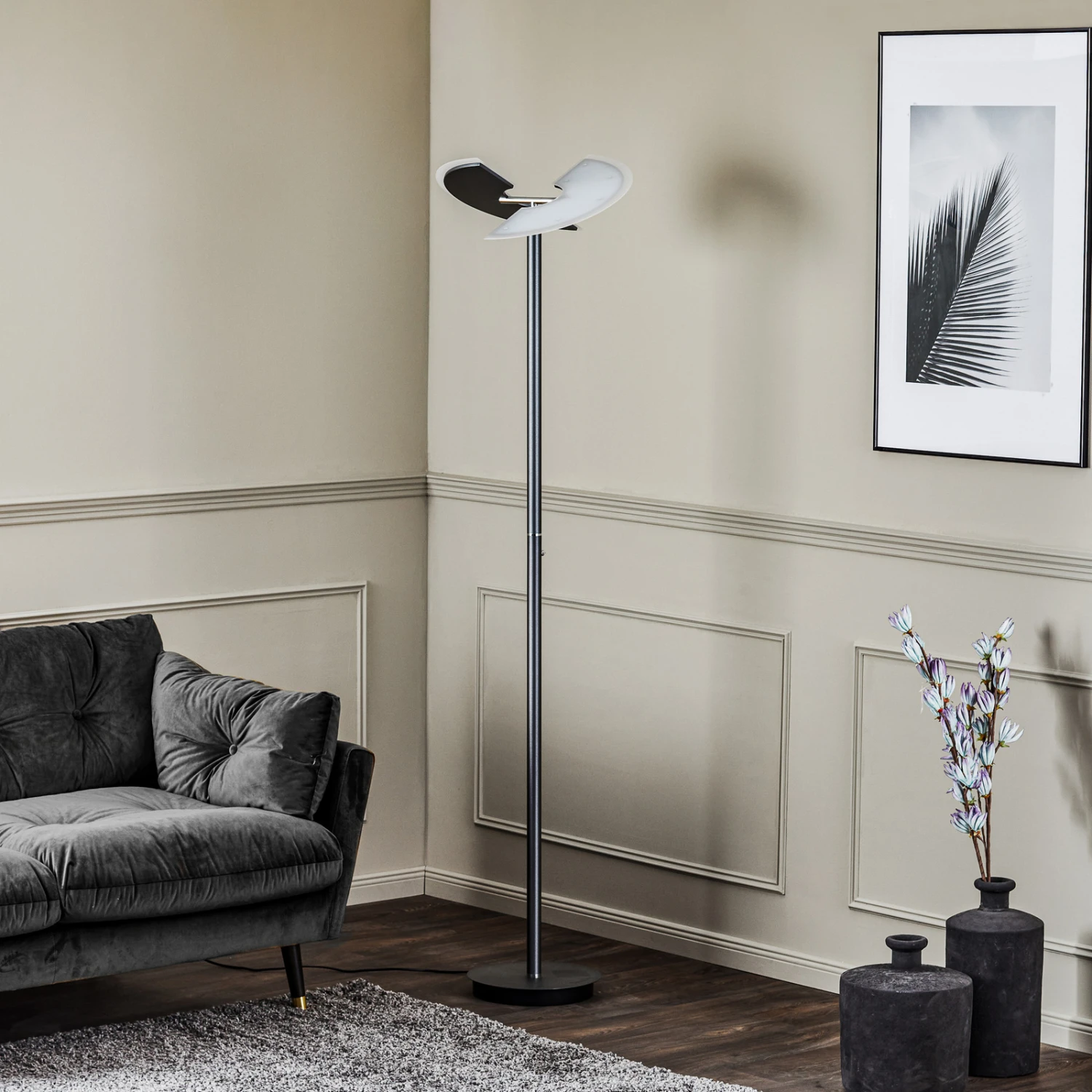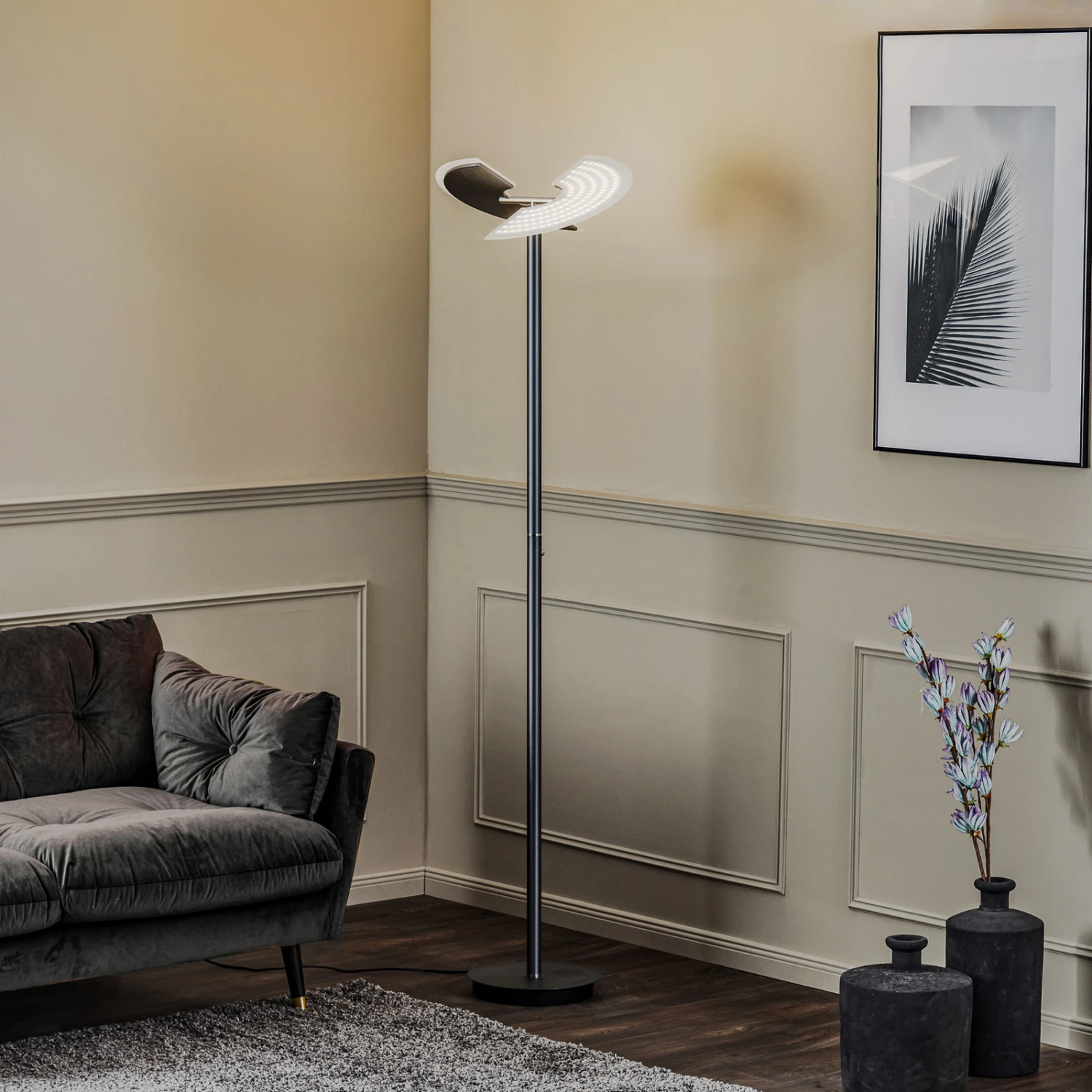 Schlanke LED-Stehleuchte Kohen mit Dimm- und CCT-Funktion in Anthrazit