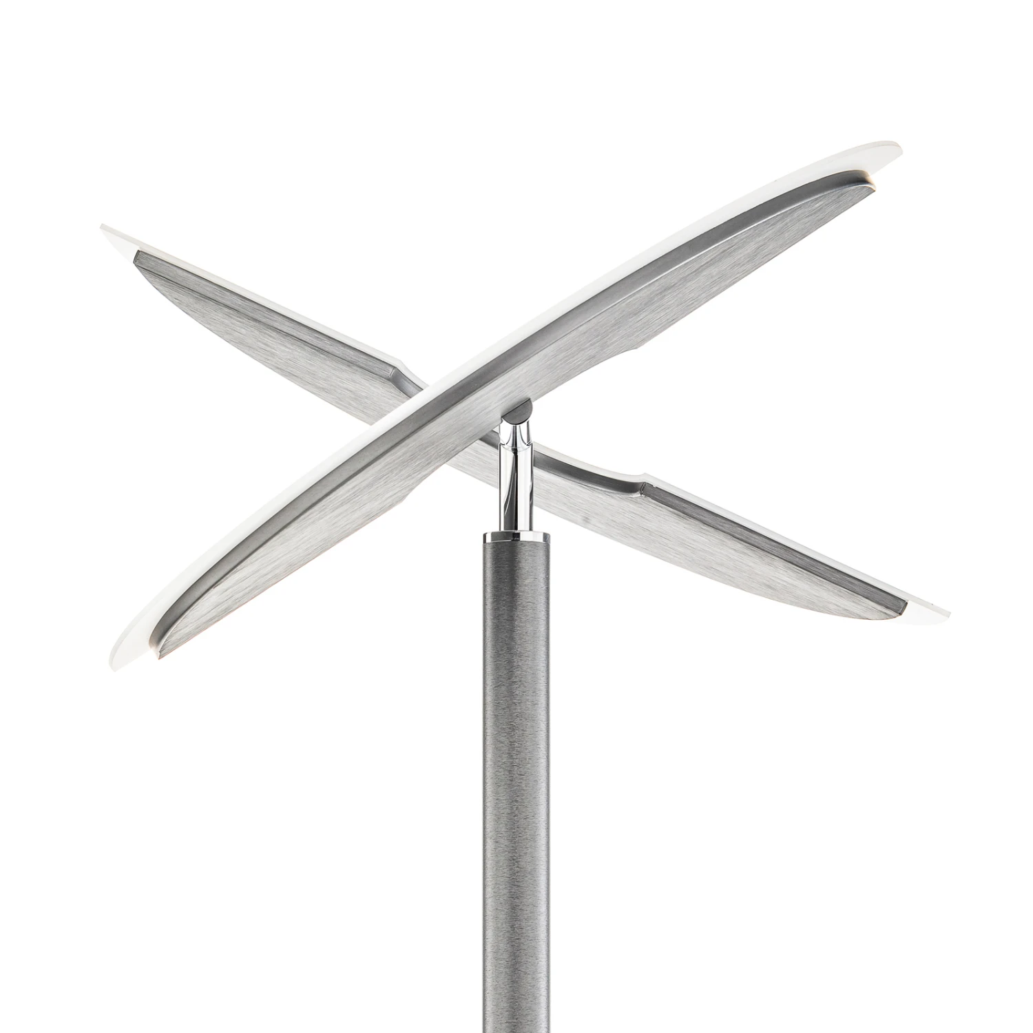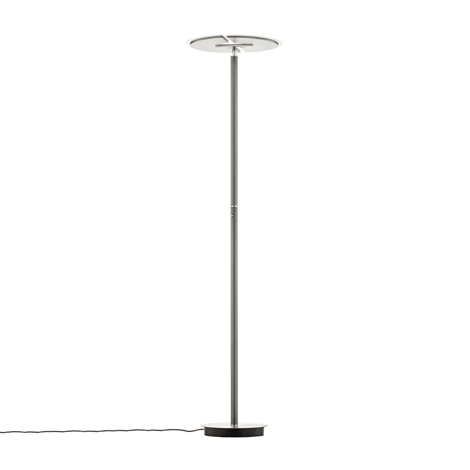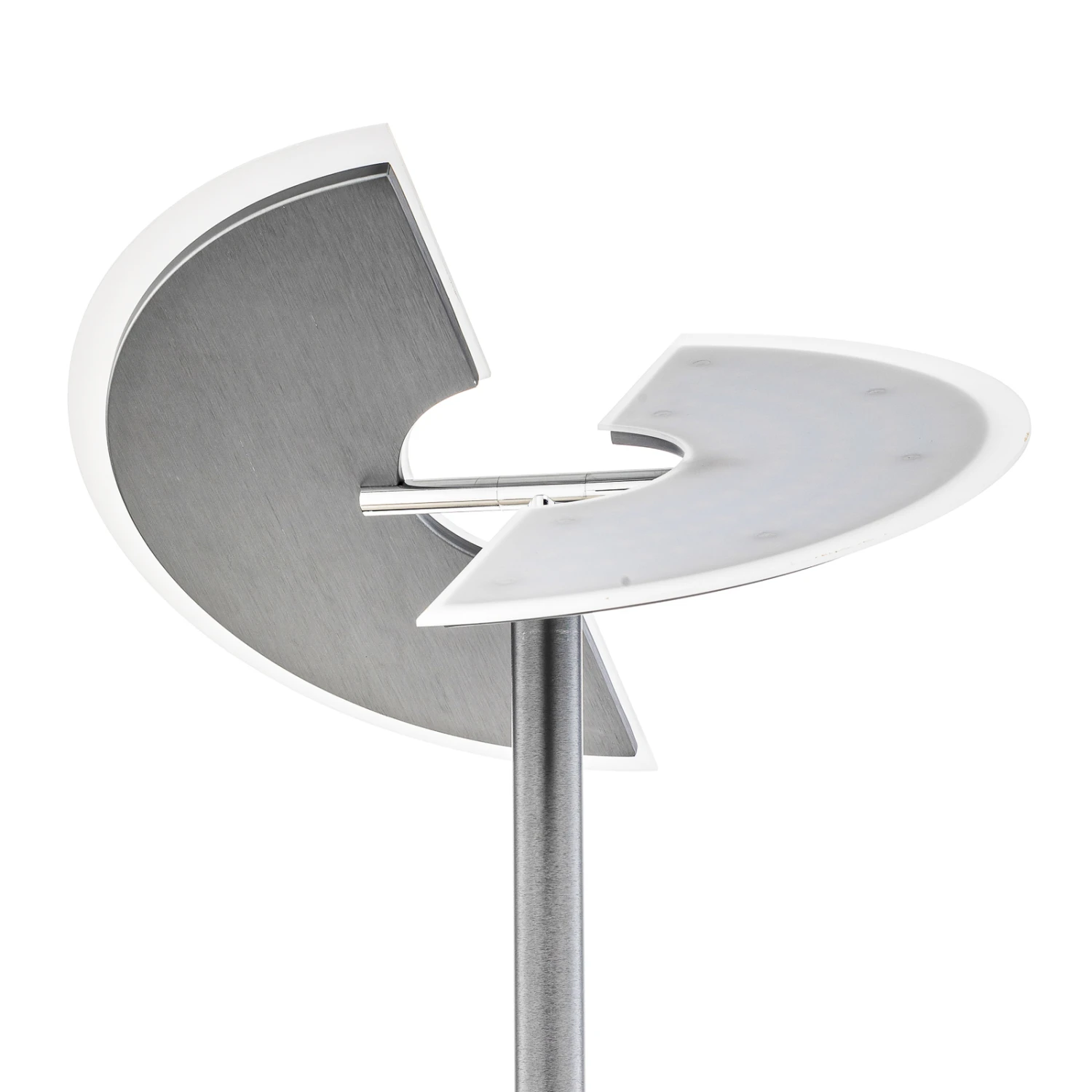 Die LED-Stehlampe Kohen ist eine stilvolle und praktische Ergänzung für den Innenbereich. Ihr schlanker Körper besteht aus Eisen und Kunststoff und an seiner Spitze sitzt ein Leuchtenschirm, der aus einem runden Panel besteht, das zweigeteilt ist. In diesem Panel sitzen festverbaute LEDs, die mit Hilfe eines Schalters gedimmt werden und ihre Lichtfarbe (warmweiß bis tageslicht) stufenlos anpassen können. Dementsprechend ermöglicht die LED-Stehleuchte Kohen eine Anpassung der Beleuchtung an die persönlichen Bedürfnisse und jederzeit eine Änderung dieser.