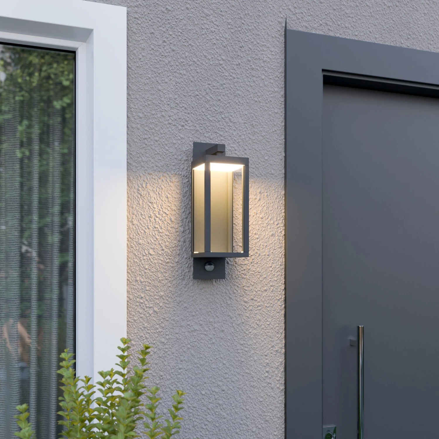 LED-Außenwandlampe Ferdinand mit integriertem Bewegungsmelder und laternenförmigem Schirm – ausgezeichnet mit dem Reddot Award 2018