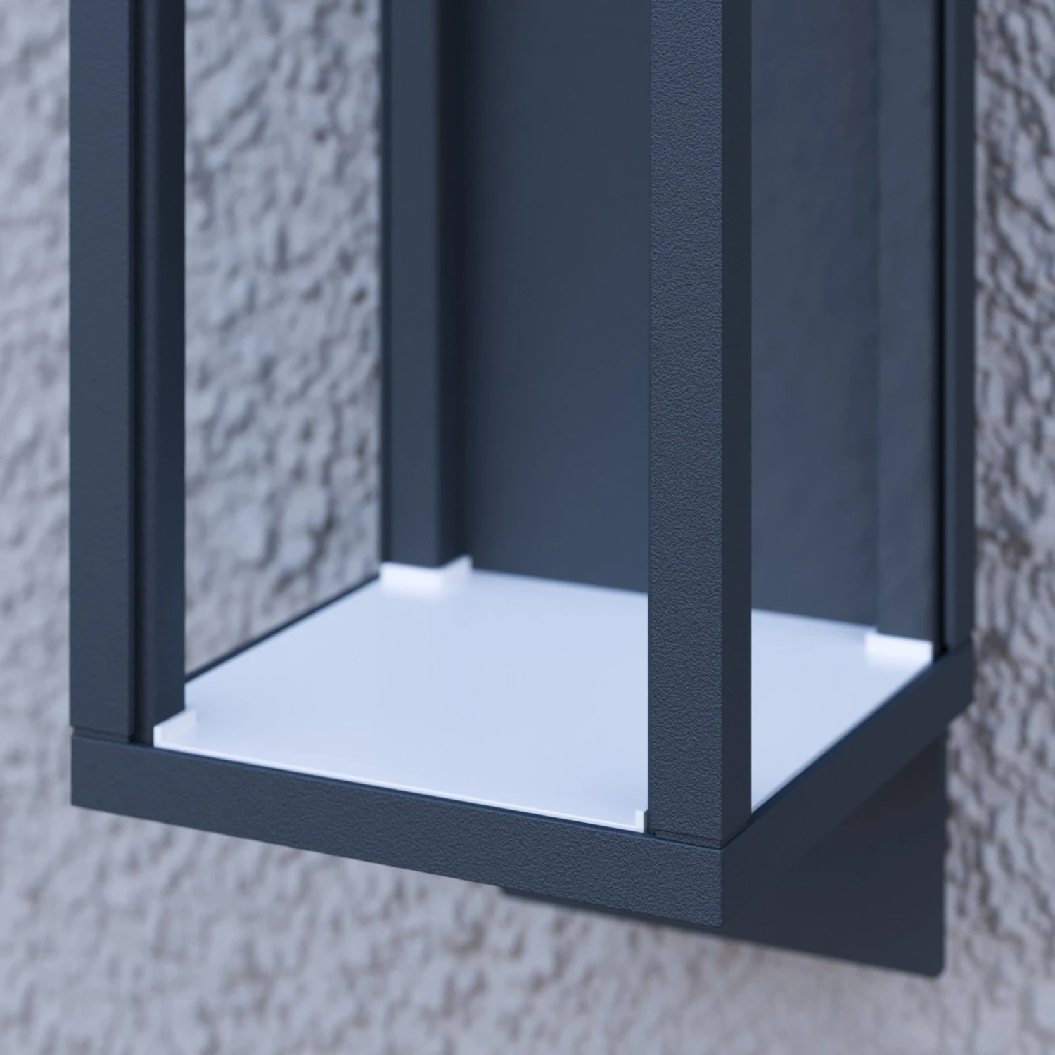 Das Aluminiumgestell dieser LED-Außenwandleuchte besitzt ein dunkelgraues Finish und der eckige Leuchtenschirm wird komplettiert von den klaren Scheiben aus Glas. Somit kann man sichergehen, dass das LED-Licht mit seiner vollen Leuchtkraft an die Umgebung dringt und zu einer hellen Ausleuchtung beiträgt.