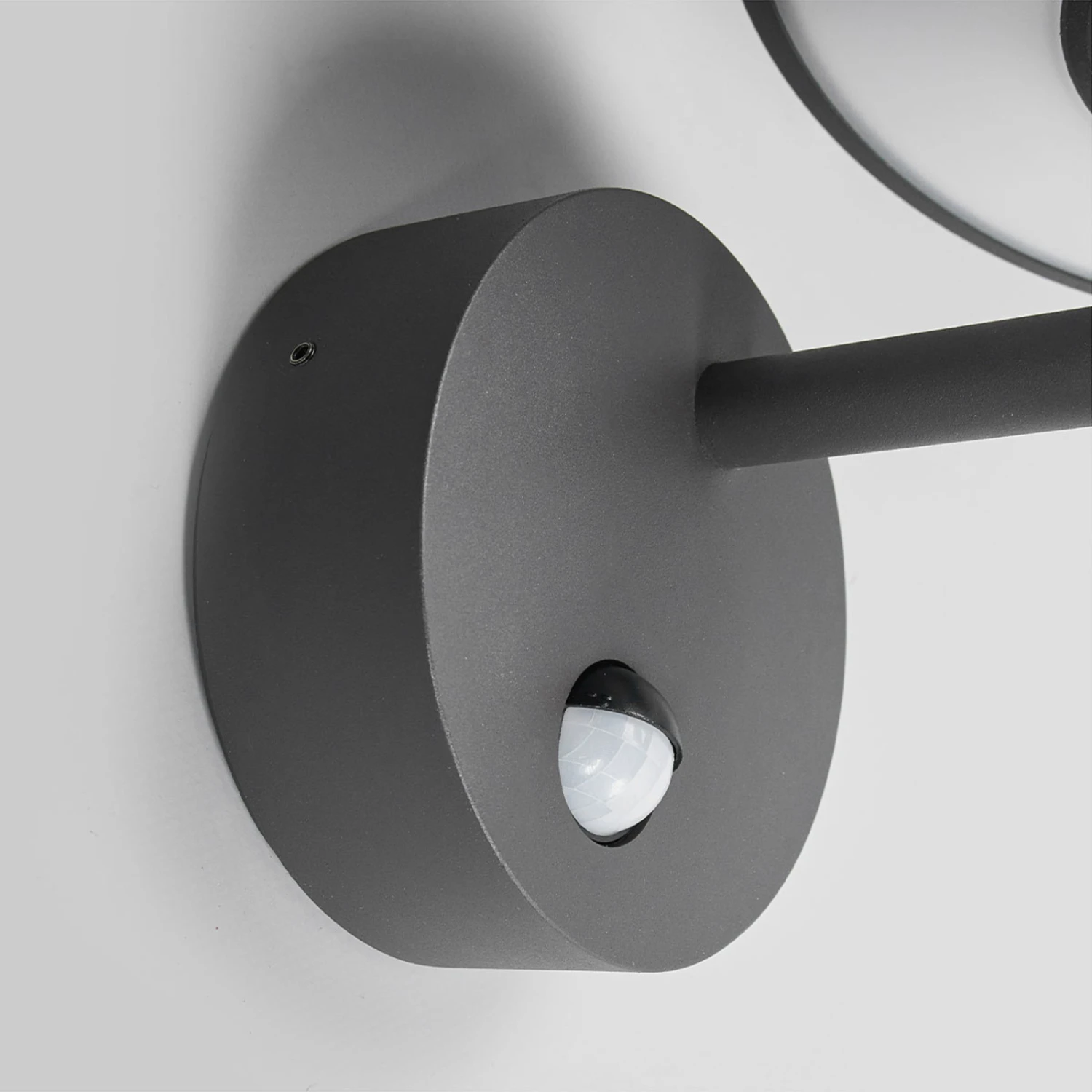 LED-Außenwandleuchten sind bekannt dafür, dass sie nur wenig Strom verbrauchen, aber hell leuchten können. Das gilt auch für Fenia, die aus dunkelgrauem Aluminium besteht, eine runde Form hat und den Lichtschein Richtung Boden abgibt. Sie sorgt dafür, dass auch nach Einbruch der Nacht stets Licht zum Orientieren vorhanden ist. Dabei ist der integrierte Bewegungsmelder von großem Vorteil, denn so schaltet sich das Licht nur dann ein, wenn es von einer Person benötigt wird, weil der Sensor eine Bewegung registriert.
