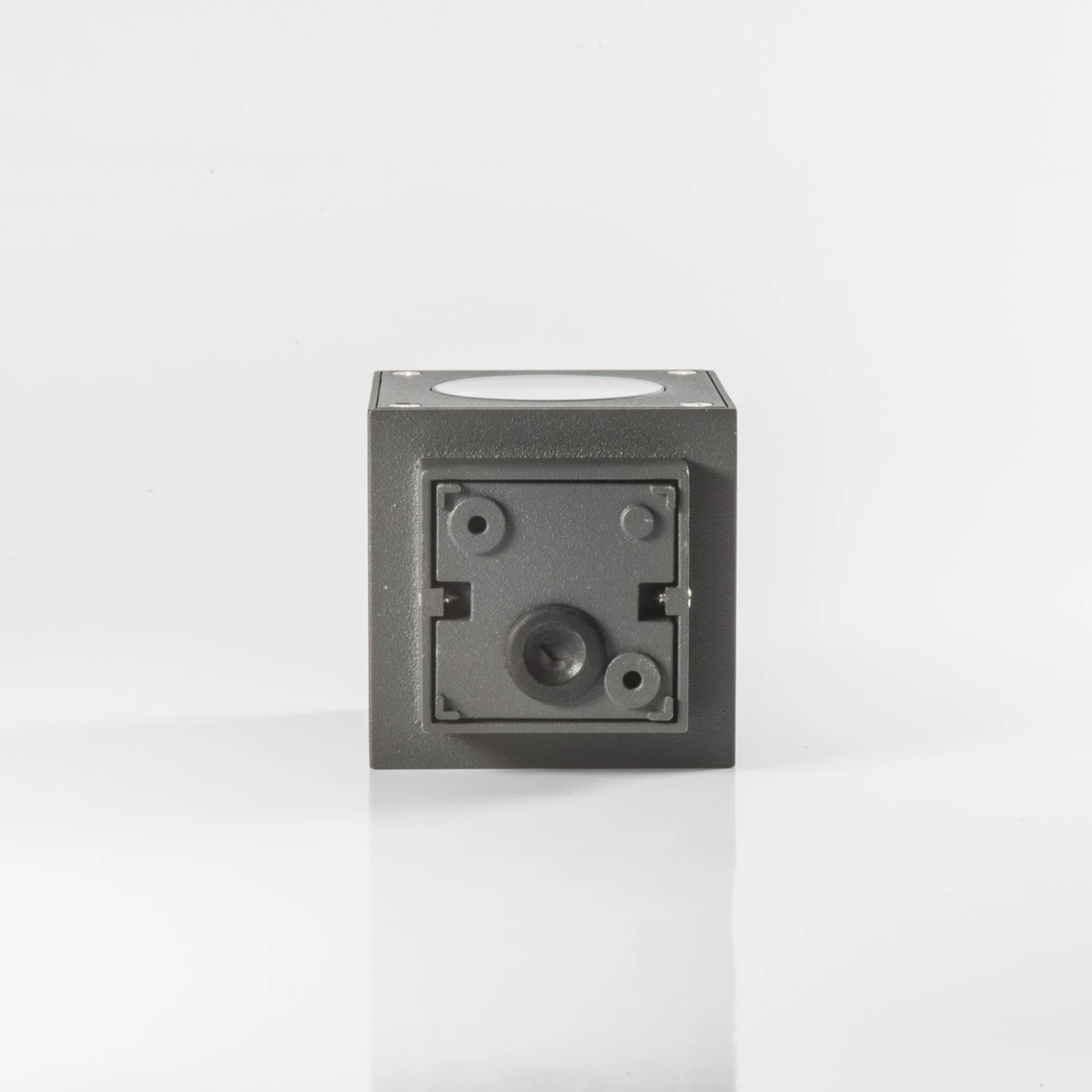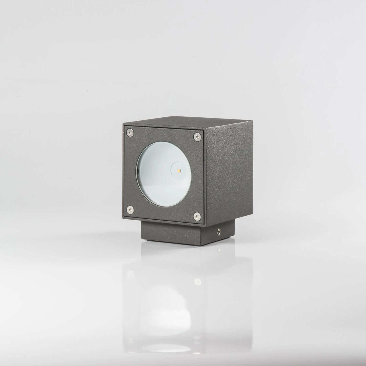 Insgesamt 2 Marken-LEDs mit je 3 W Leistung und einer Lichttemperatur von 3.000 Kelvin sorgen bei dieser für den Außenbereich konzipierten Wandleuchte für beeindruckende Lichteffekte, denn nach oben entweicht nur ein schmaler Streifen des warmweißen Lichts, während es nach unten in einem recht breiten Winkel austritt. Dabei ist es durch die nach oben und unten gerichteten Öffnungen eher indirektes Licht, das die Außenumgebung von Häusern und Gebäudekomplexen optimal erhellt. Schaut man sich die Form der Leuchte an, dann kommt einem vielleicht gleich der altbekannte Slogan „Quadratisch, praktisch, …“ in den Sinn. Und so Unrecht hat man damit auch in diesem Fall nicht, denn diese unprätentiöse Formensprache – hier nicht nur quadratisch, sondern gleich würfelförmig – stellt eine ideale Lösung zwischen modern und zeitlos dar – und ist: einfach gut!