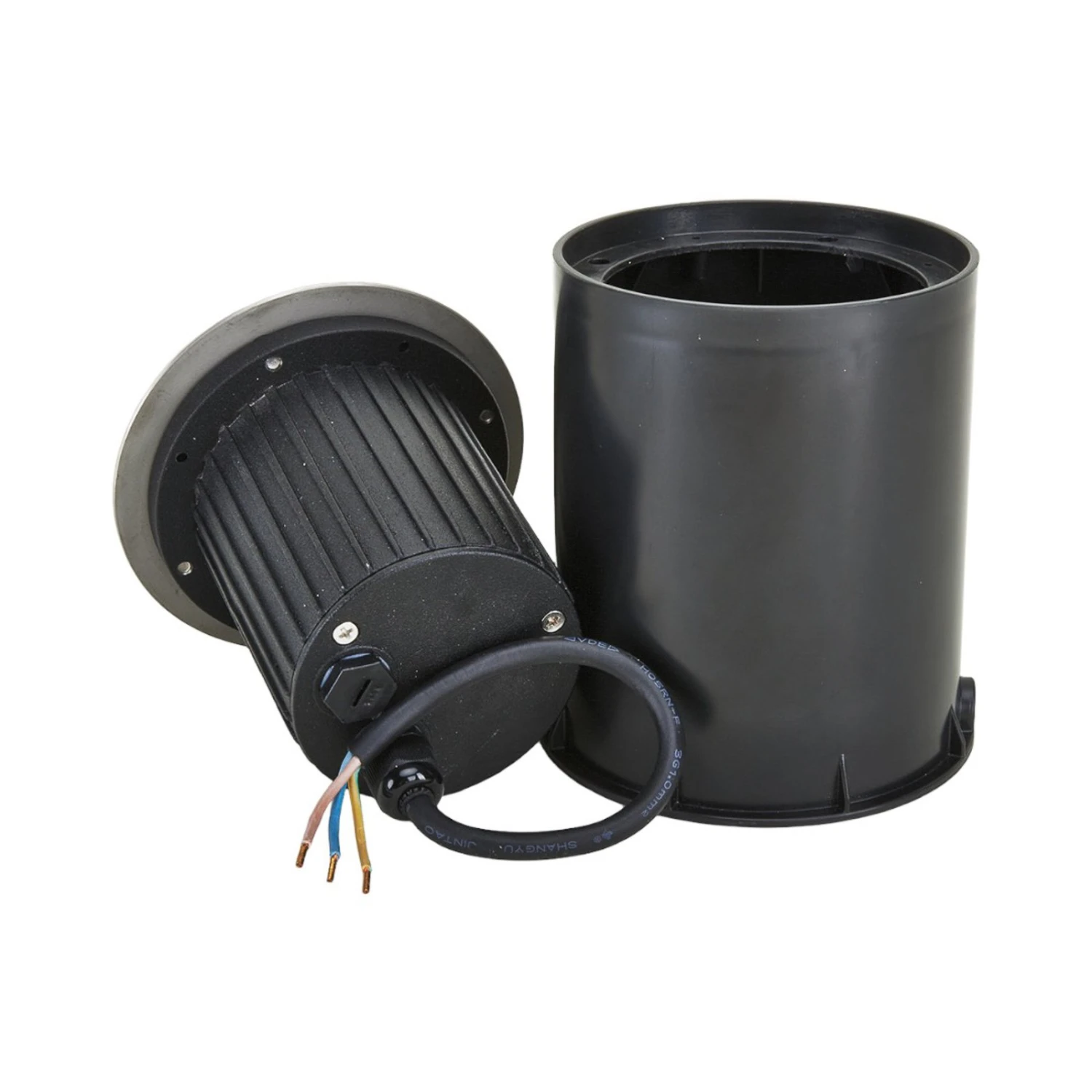 Die LED-Bodeneinbauleuchte Jos kommt in klassisch runder Form daher und wird von einem Edelstahlrahmen geziert. Mit IP67 ist der Einbau im Außenbereich wie z. B. Hofeinfahrten bedenkenlos möglich, denn Jos ist damit ausreichend gegen das Eindringen von Wasser und Schmutz geschützt. Zudem ist sie stabil gebaut, so dass sie bis zu einem Gewicht von 500 kg befahr- und belastbar ist. Die 3 Cree Marken-LEDs à 1 Watt erreichen insgesamt einen Lichtstrom von 319