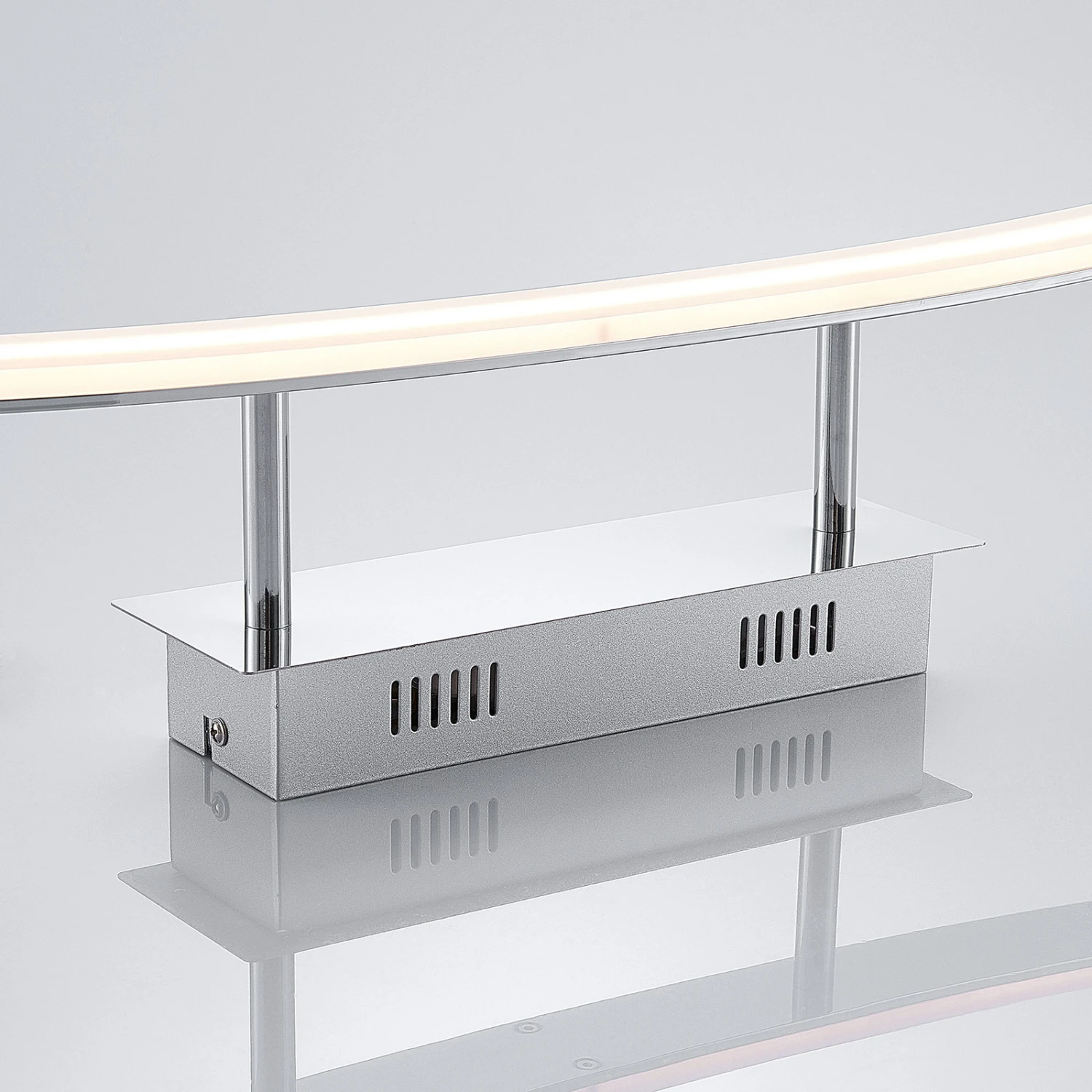 Der gebogene und satinierte Diffusor dieser Deckenlampe bewirkt eine gleichmäßige Verteilung des warmweißen LED-Lichts. Das Gestell präsentiert sich in glänzendem Chrom und es wird harmonisch von der satinierten Oberfläche des gebogenen Diffusors ergänzt. Als LED-Deckenleuchte kann Lorian wirklich in nahezu jede Umgebung – Küche, Flur, Wohnzimmer etc. – integriert werden und sie bietet hellen Lichtschein bei geringem Energieverbrauch, so dass das Portemonnaie spürbar entlastet wird.