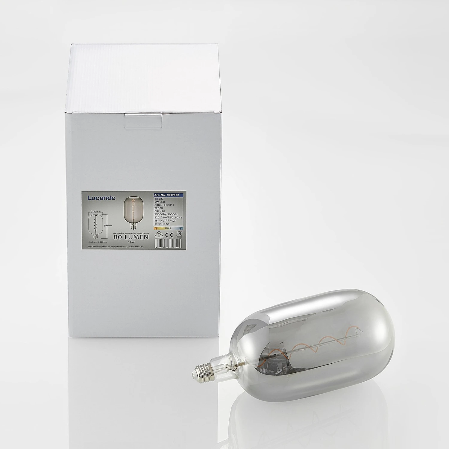 Ein besonderes Flair verleiht diese E27 LED-Lampe, denn sie ist nicht nur in einer ausladenden Röhrenform gestaltet, sondern punktet mit einer Rauchglasoptik, die zur Zeit angesagt ist. Die Lampe lässt mithilfe eines Phasenanschnitt- und Phasenabschnittdimmers in der Helligkeit regulieren und ist dank ihrer LED-Technik sparsam im Verbrauch. Ideal für dekorative Leuchten!