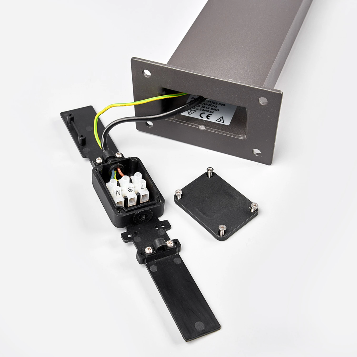 Es ist unschwer zu erkennen, dass die Pollerlampe Marius eher einen modernen Charakter trägt, denn der aus Aluminium bestehende Leuchtenkörper ist grafitgrau lackiert und hat keine auffälligen Details, sondern vermittelt eher einen reduzierten Ausdruck. Der flache Leuchtenkopf ist mit hochwertigen LEDs bestückt, die in einem angenehmen Warmweiß leuchten und ein helles Licht erzeugen. Um den Lichtschein besser ausrichten zu können, ist die LED-Pollerlampe mit einem Gelenk versehen, anhand dessen man den Leuchtenkopf nach oben und unten bewegen kann.