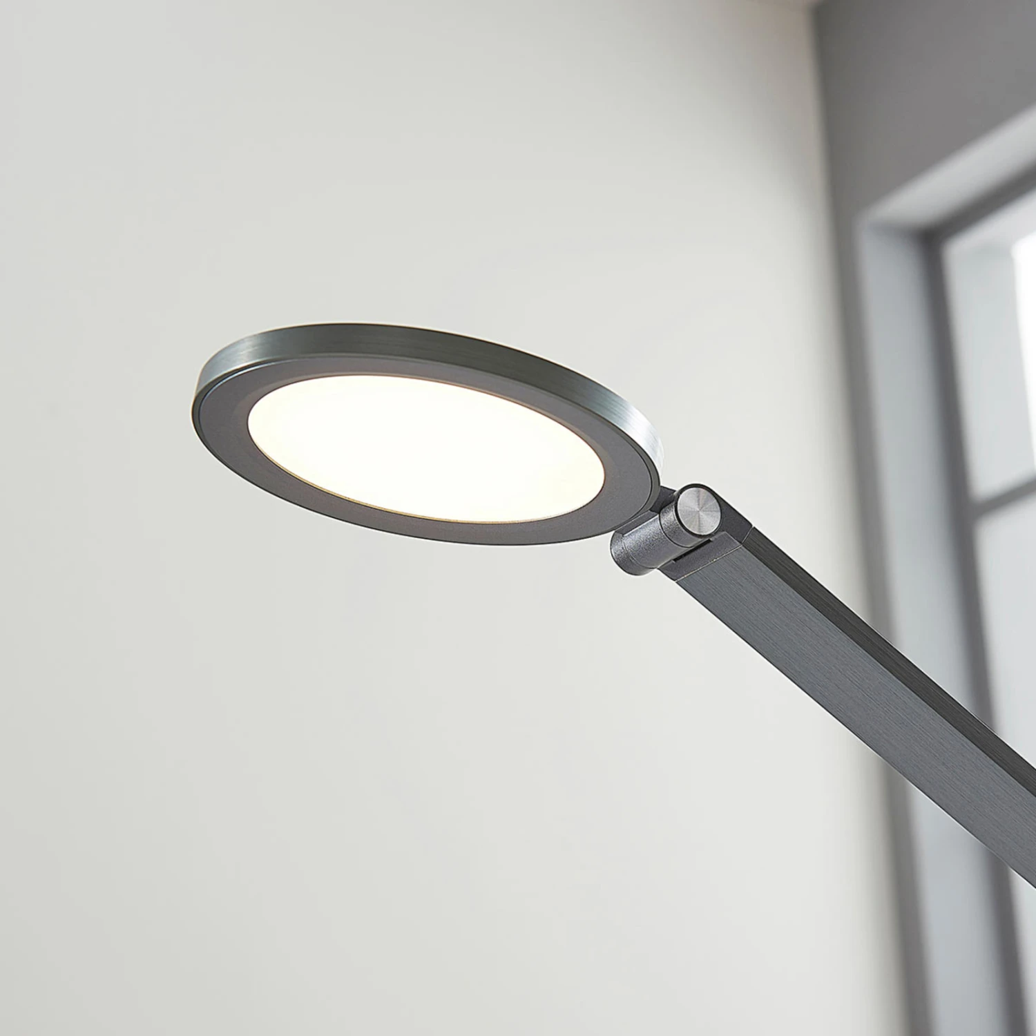 LED-Schreibtischlampe Mion mit rundem Leuchtkopf und Dimmer
