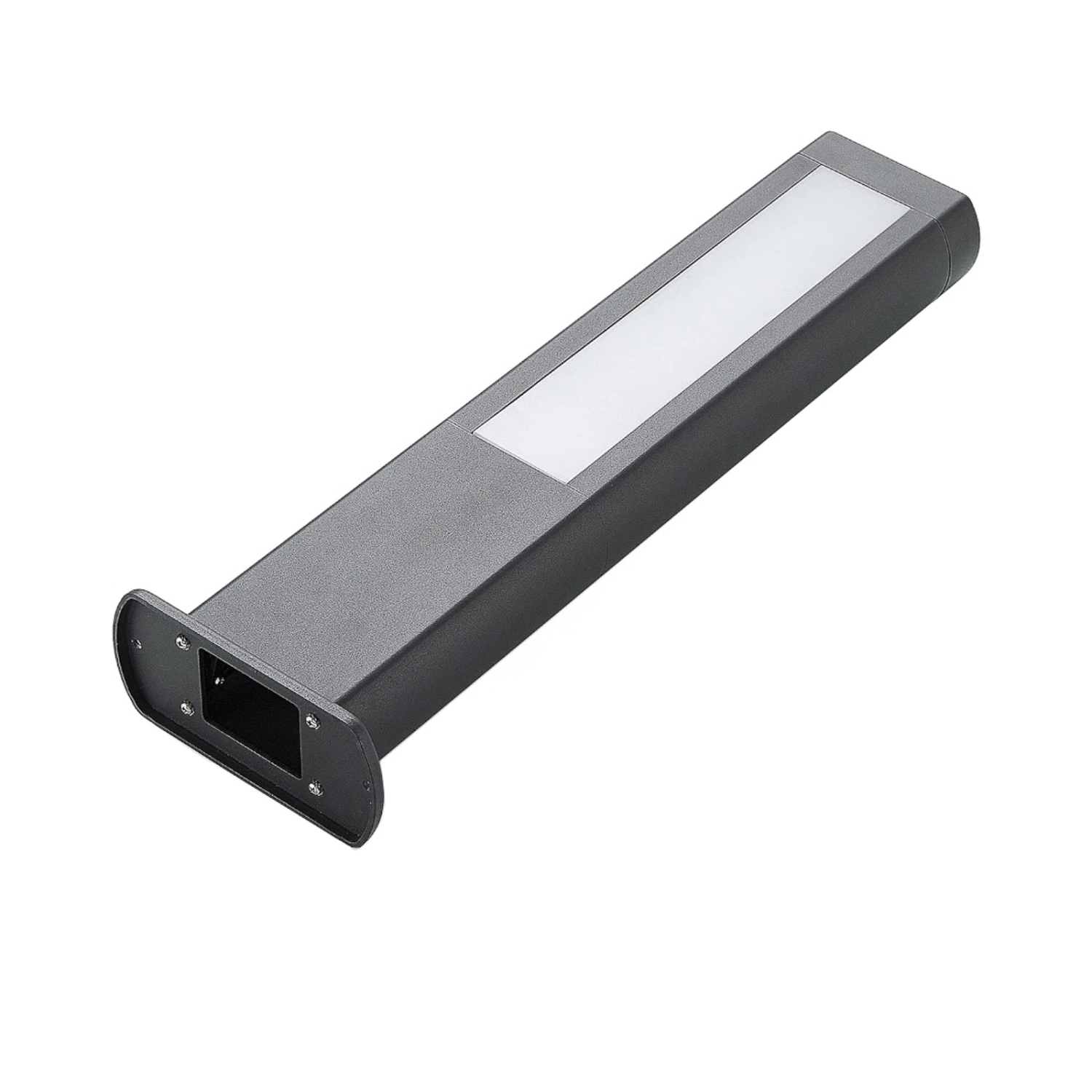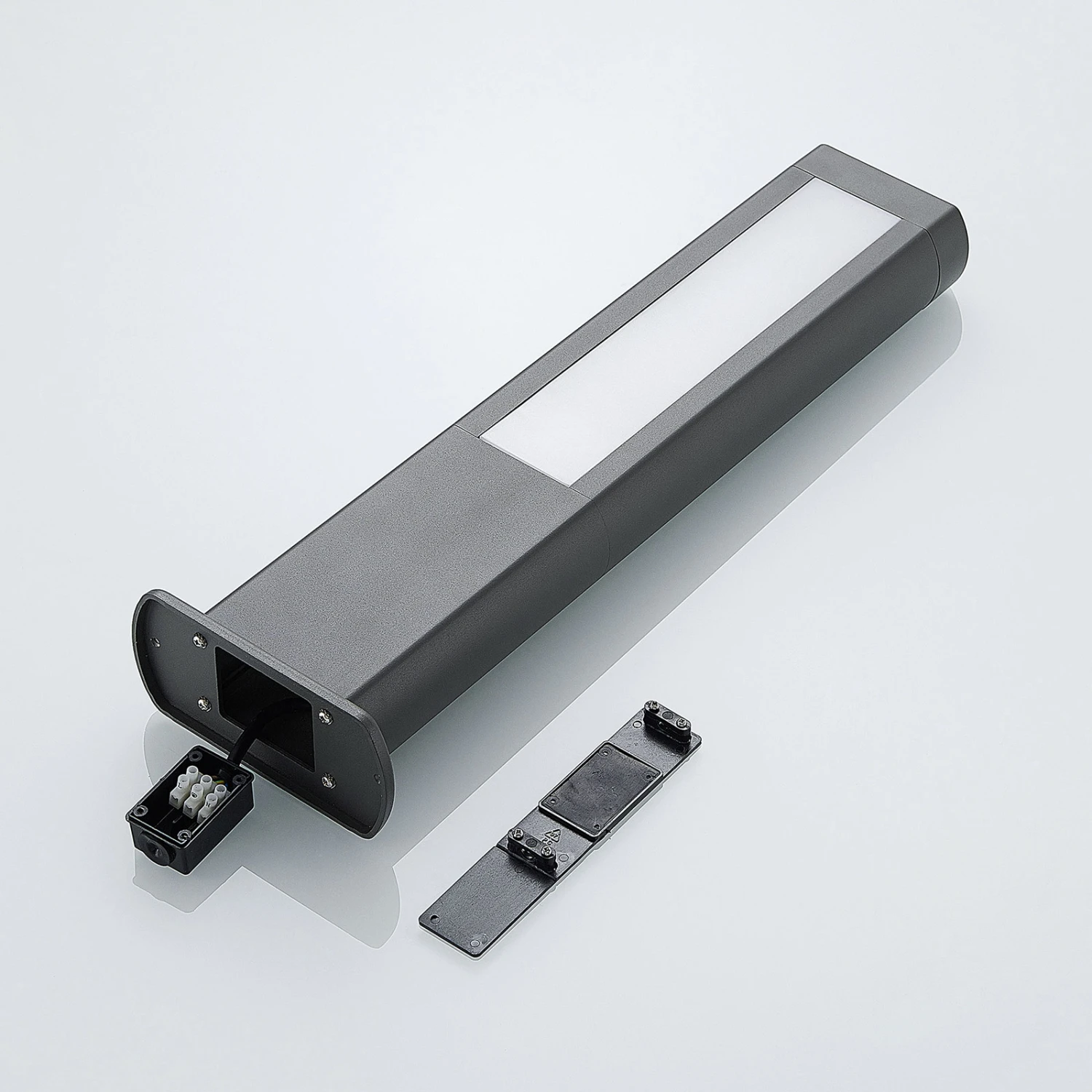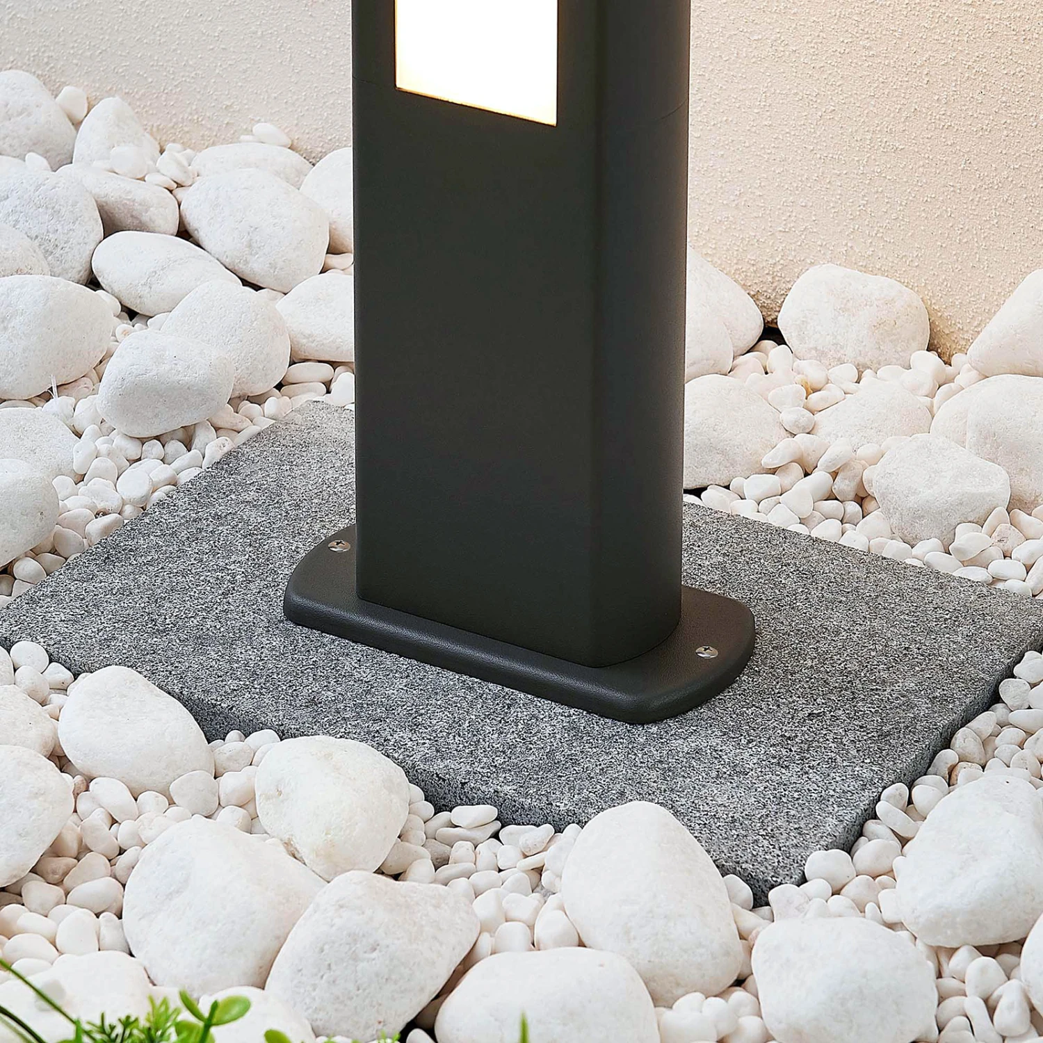 Eckige LED-Sockellampe Mhairi mit anthrazitfarbener Oberflächengestaltung und Schutzart IP54