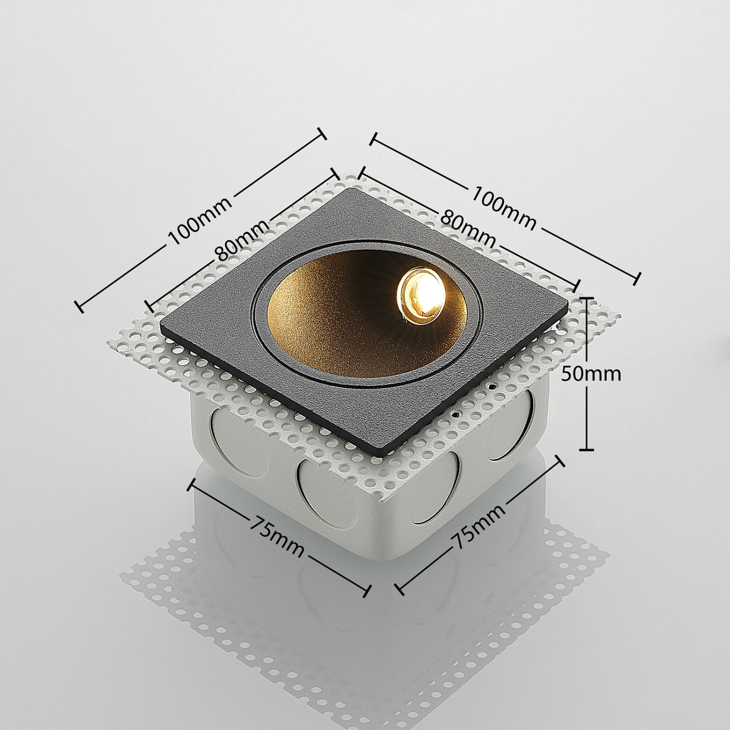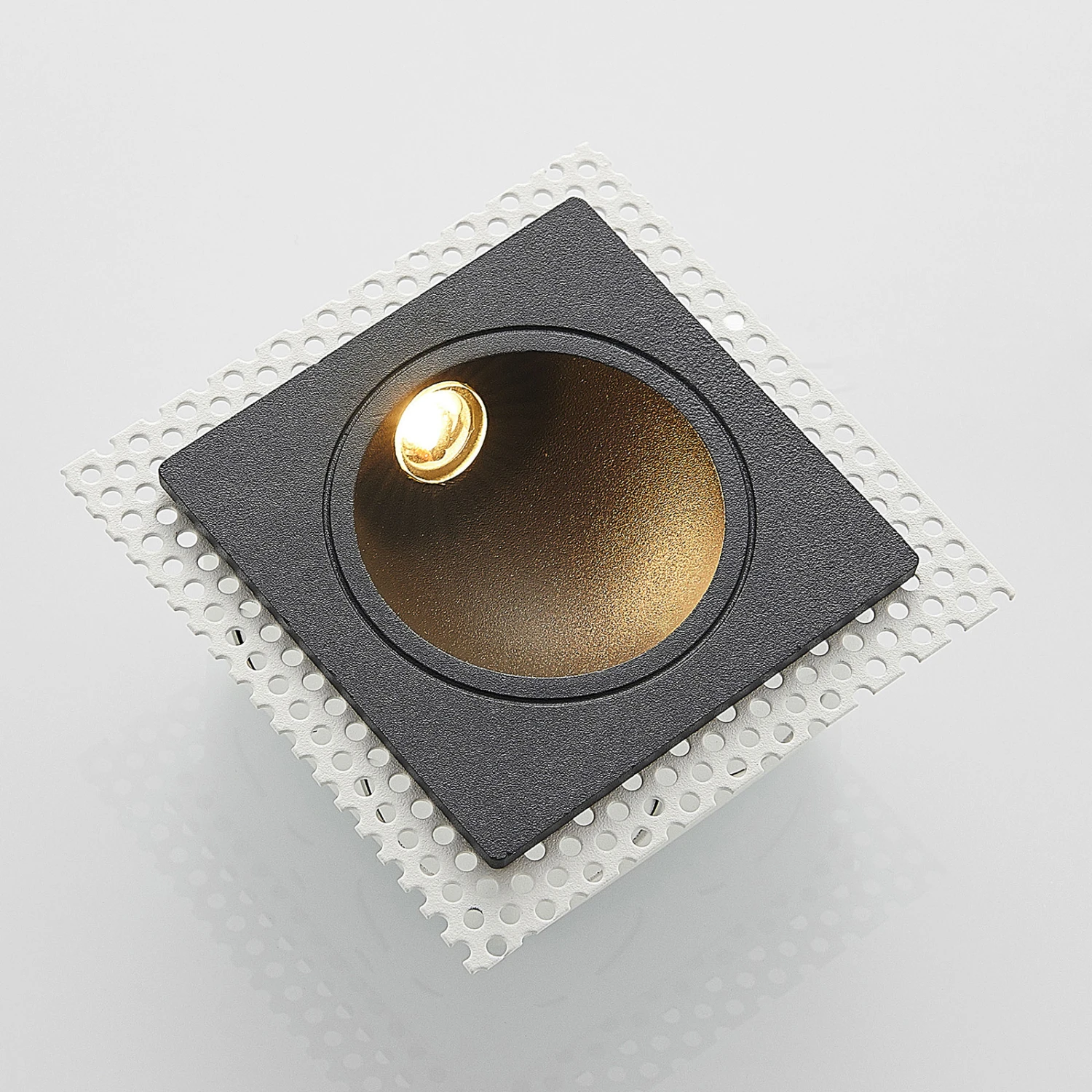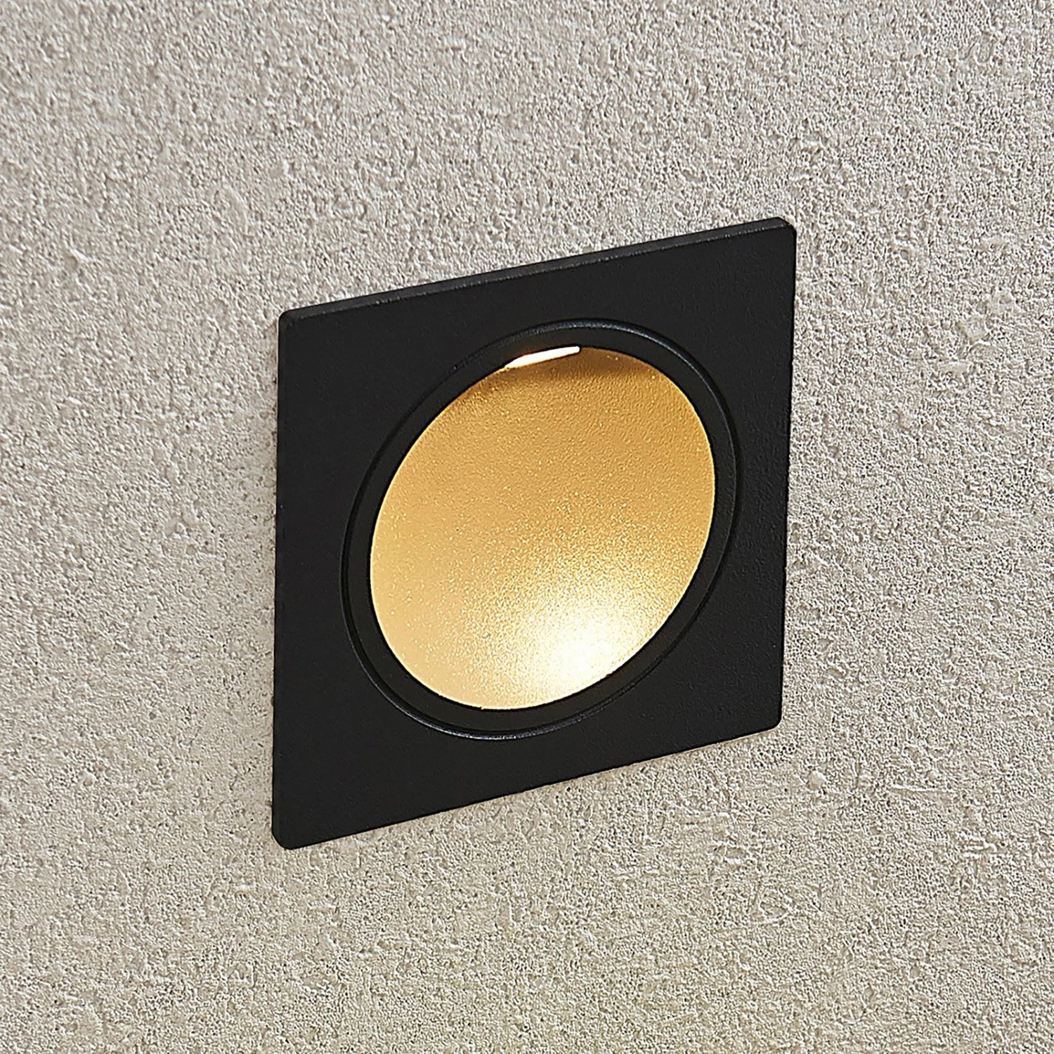 Eckige LED-Wandeinbauleuchte Pordis mit dunkelgrauem Gehäuse – ideal zur Beleuchtung von Treppenstufen, IP65