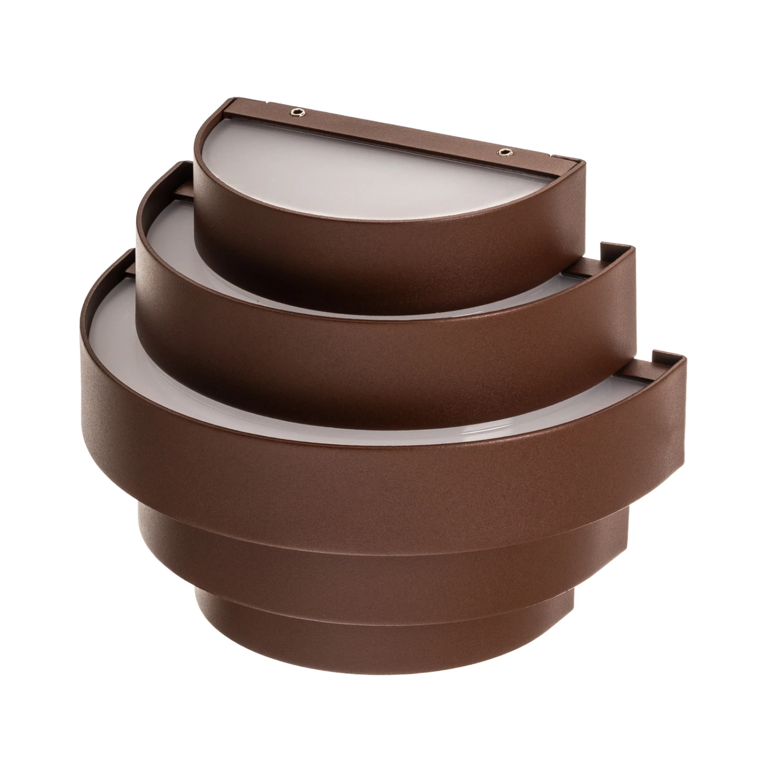Rostbraune LED-Wandleuchte Enisa in besonderem Design für eine indirekte Beleuchtung des Außenbereichs