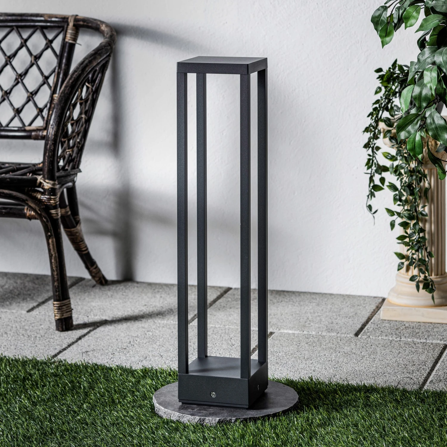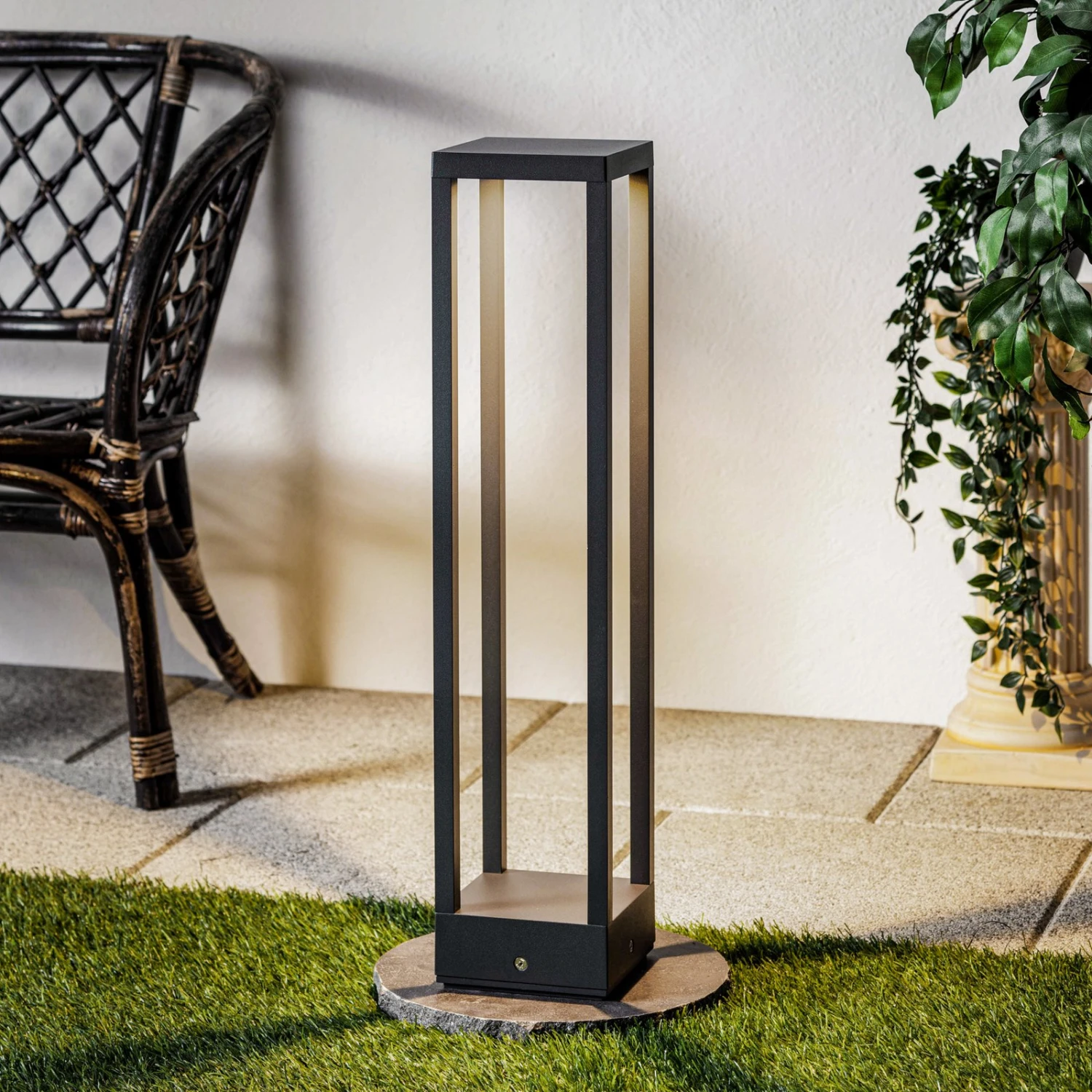 Dunkelgraue LED-Wegeleuchte Carlota mit rahmenförmigem Gestell, IP65