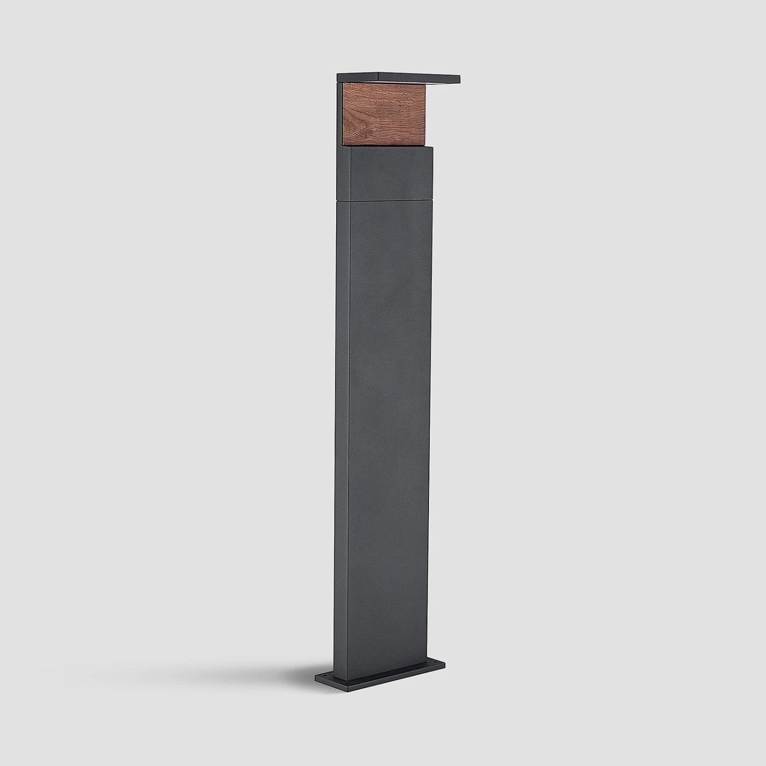 Die LED-Wegeleuchte Lignus punktet mit einem modernen Look, der sich sehen lassen kann. Das Gestell der Leuchte wurde aus langlebigem Aluminium hergestellt und mit einem markanten Finish in Dunkelgrau versehen. Als zusätzliches optisches Feature wurde ein Element in Holzoptik in das Design integriert. Dies kreiert einen stilvollen Kontrast, der besonders modern gestaltete Außenbereiche schön in Szene setzt.