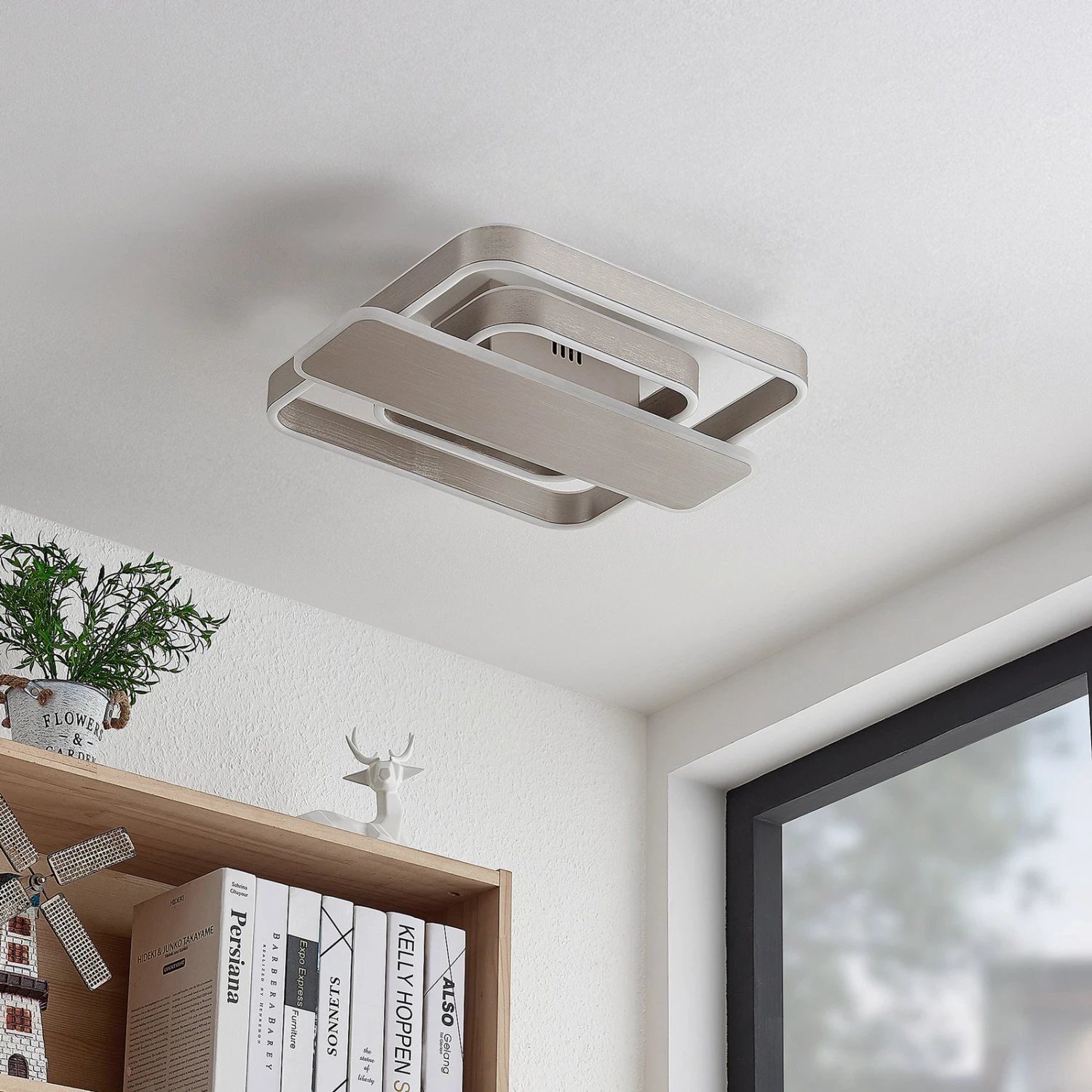Linetti lässt sich vielseitig kombinieren, ohne den vorhandenen Einrichtungsstil zu überschatten. Die Deckenlampe ist aus Metall gefertigt und mit einem Nickel-Finish versehen. Die LEDs, die an den Leuchtrahmen entlang laufen, sind mit einer Silikonschicht ummantelt und spenden so angenehme Beleuchtung ohne zu blenden.
