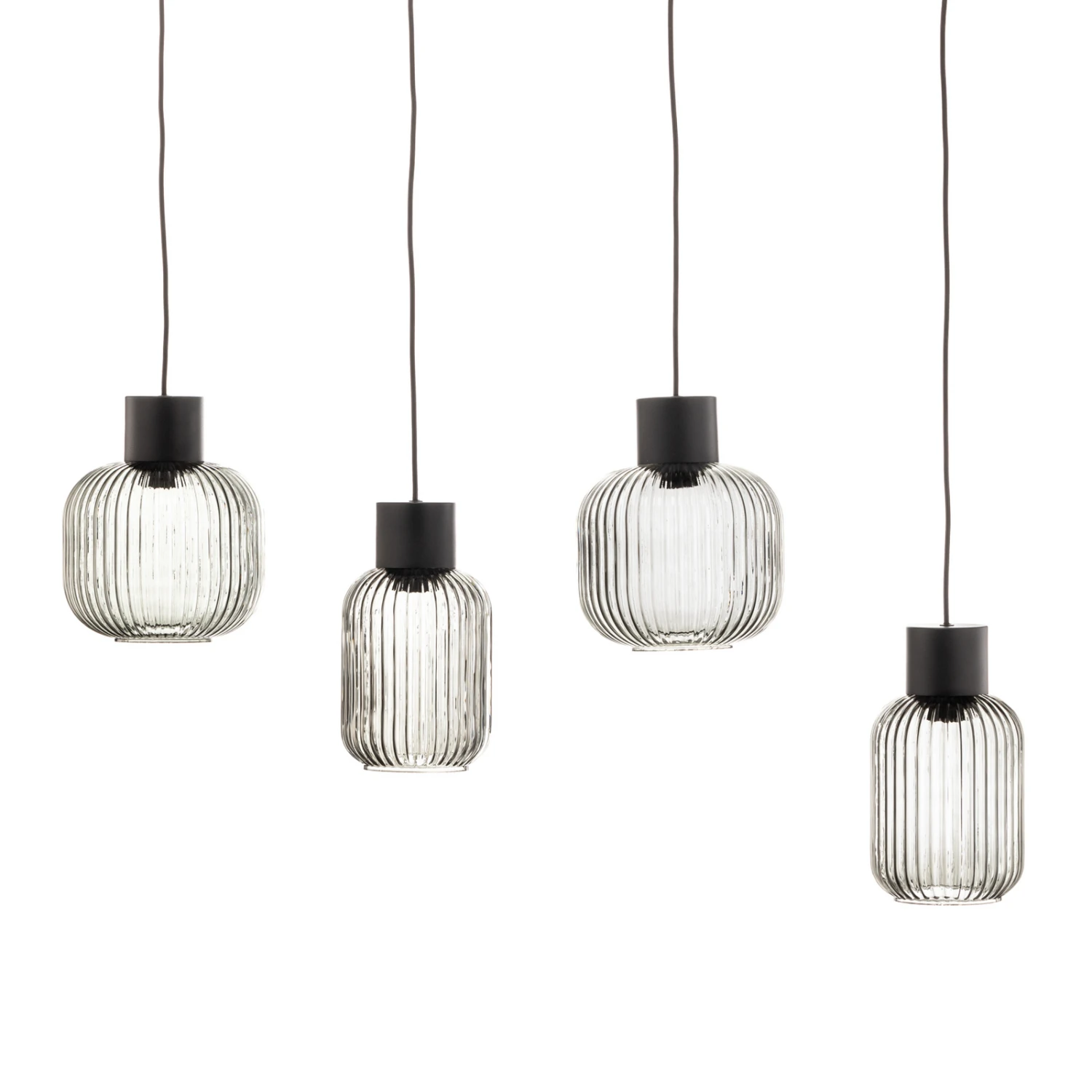 Vierflammige Hängelampe Lomeris mit zwei Arten von Rauchglasschirmen – ideal zur Tischbeleuchtung