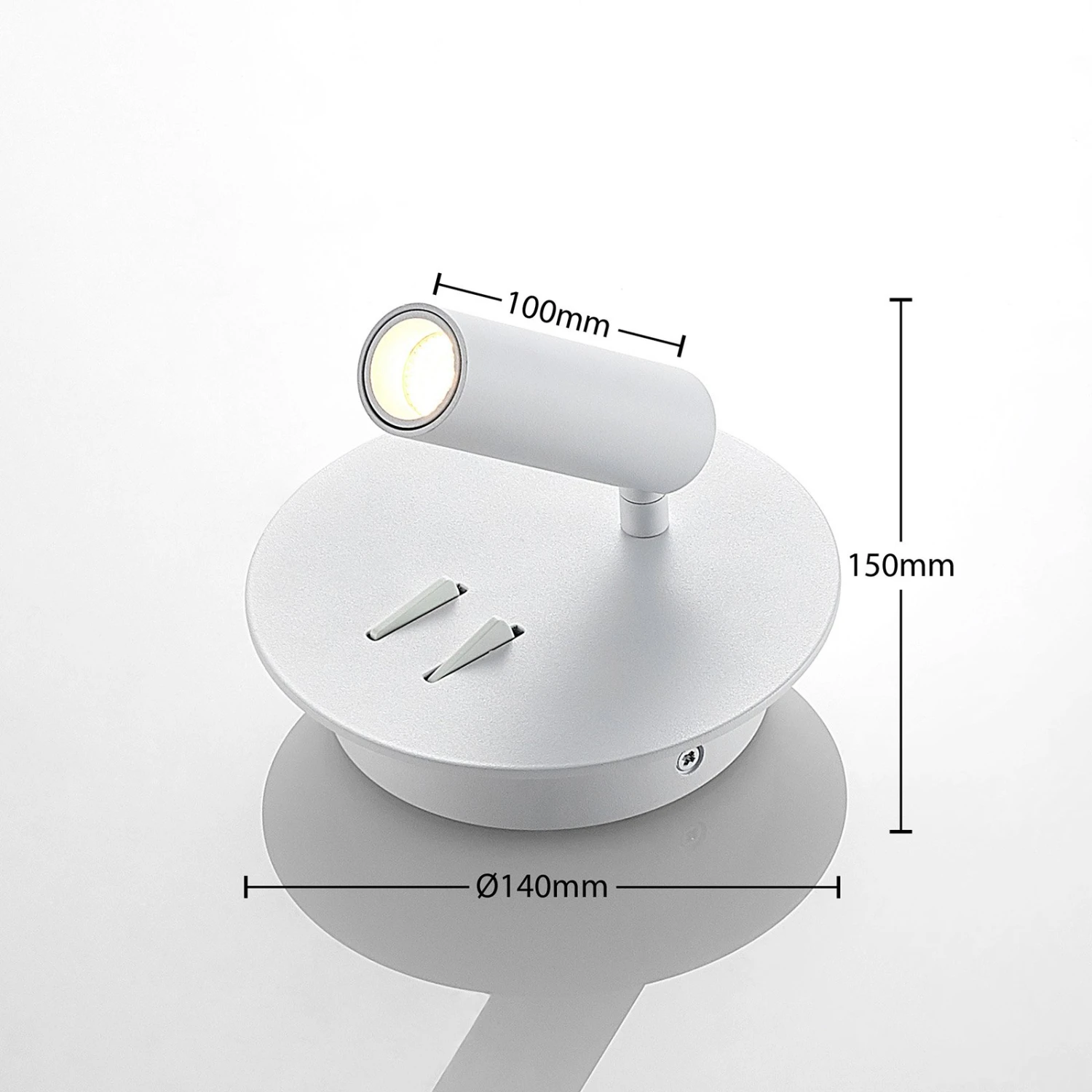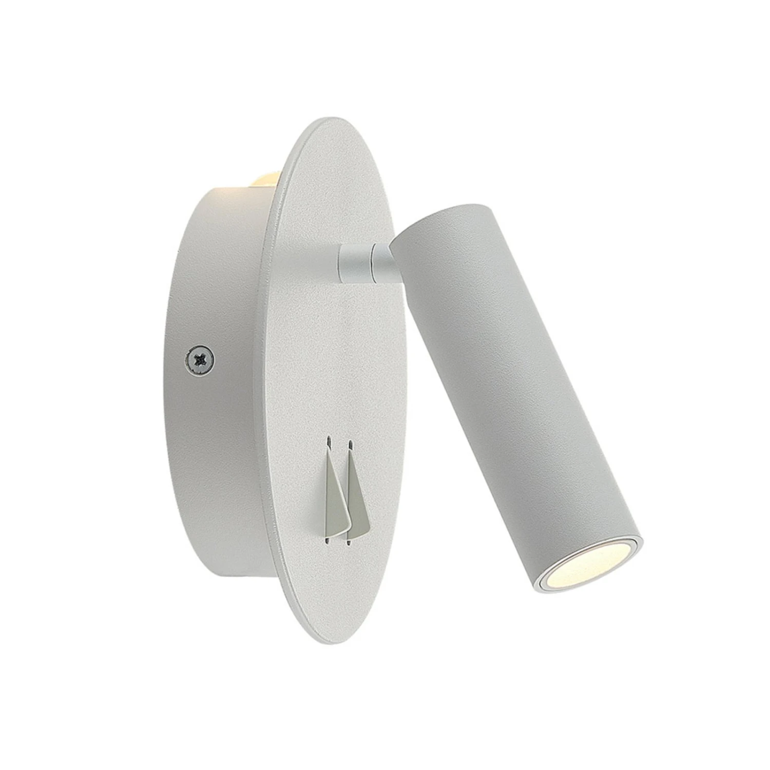 Die LED-Wandleuchte Magya verfügt nicht nur über einen verstellbaren Strahler, sondern hinter der runden Vorderwand des Gehäuses verbirgt sich zusätzlich ein stimmungsvolles Licht, das die Wand über der Leuchte erhellt. Mit zwei Wippschaltern können beide Lichtquellen unabhängig voneinander geschaltet werden. Die Oberfläche des LED-Wandstrahlers Magya wurde so behandelt, dass sie eine mattweiße Farbe hat. Insgesamt wirkt das Design zehr zeitgemäß.