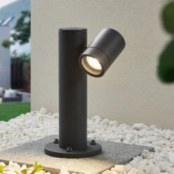 Die Sockelleuchte Maloney präsentiert sich mit einem modernen und minimalistischen Charakter. Hergestellt ist die Leuchte aus Aluminium und sie besteht aus einem schlanken Standbein, an dessen Spitze ein zylinderförmiger Leuchtenschirm sitzt, der auch geschwenkt werden kann. Dieser Leuchtenschirm kann mit entsprechenden Leuchtmitteln bestückt werden und sorgt somit immer für die passende Beleuchtung im Garten oder in einer Einfahrt. Die Sockelleuchte Maloney ist nachweislich gegen Spritzwasser und Staub geschützt und ist aus diesem Grund eine robuste Begleiterin, wenn es um die Beleuchtung des Außenbereiches geht.