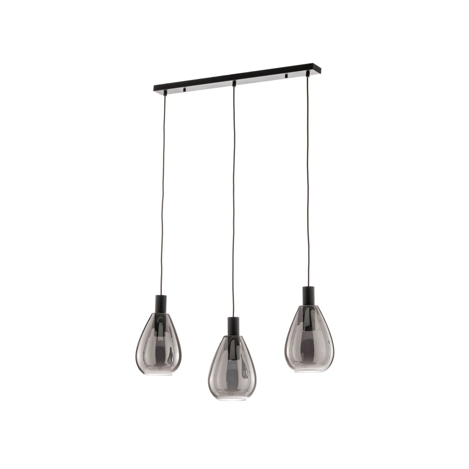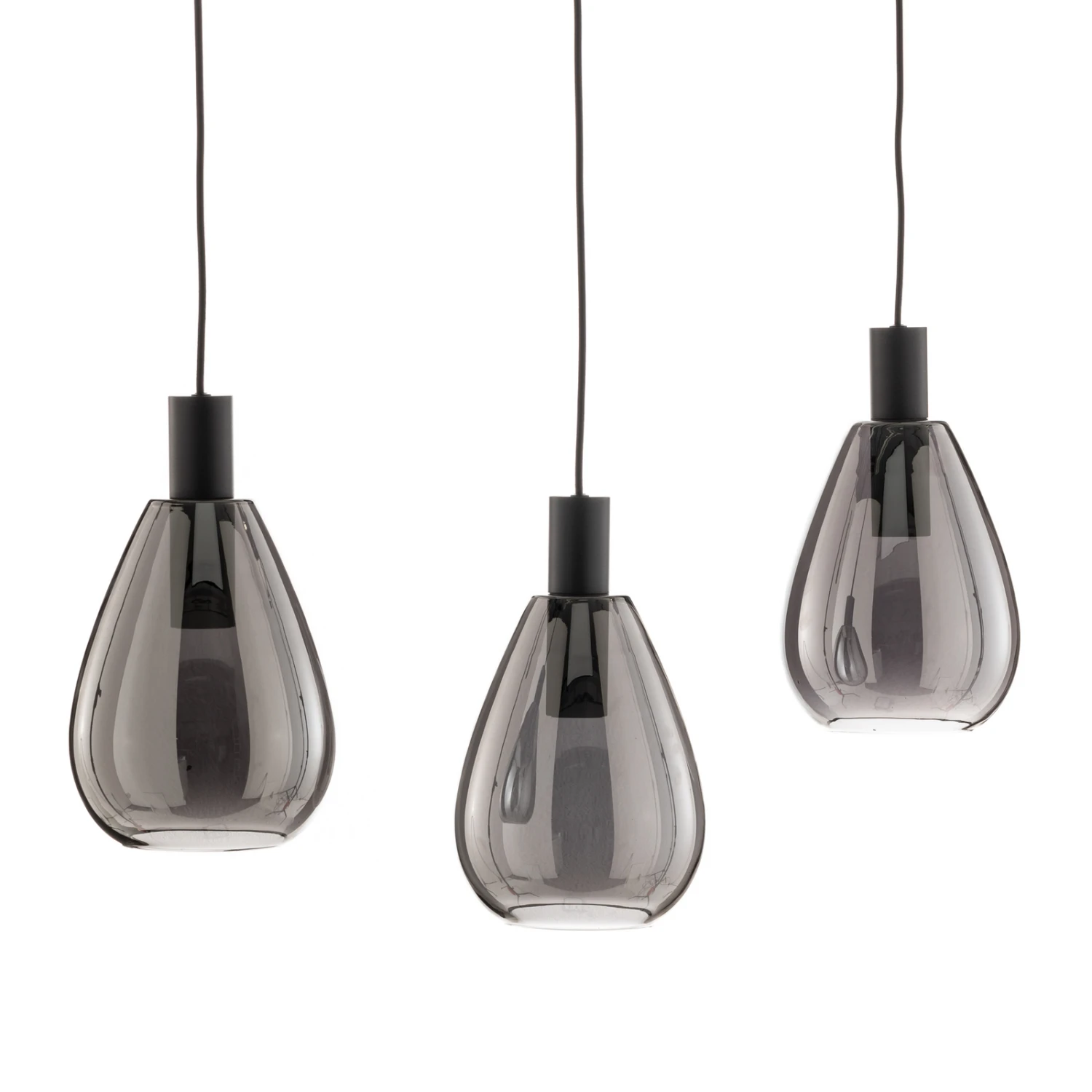 Dreiflammige Pendelleuchte Marvelos mit rauchigen Glasschirmen in Grau – perfekt für den Esstisch