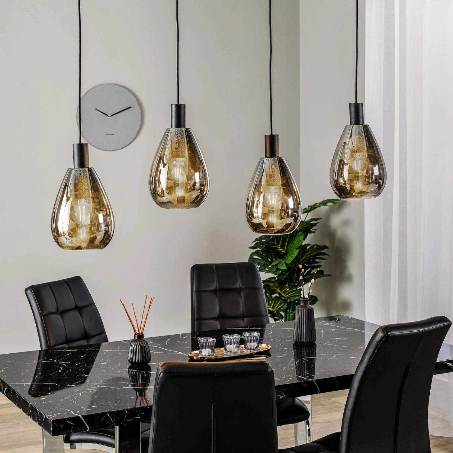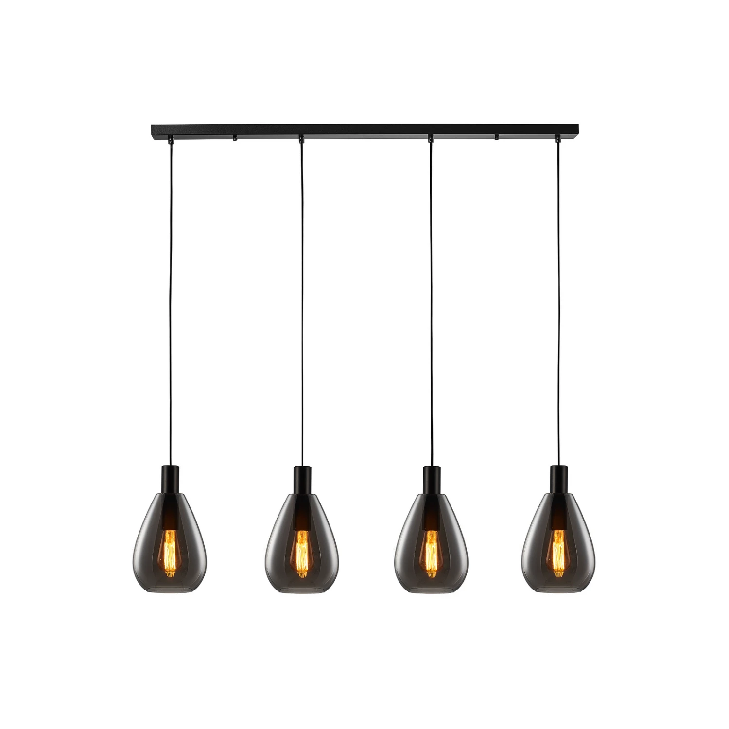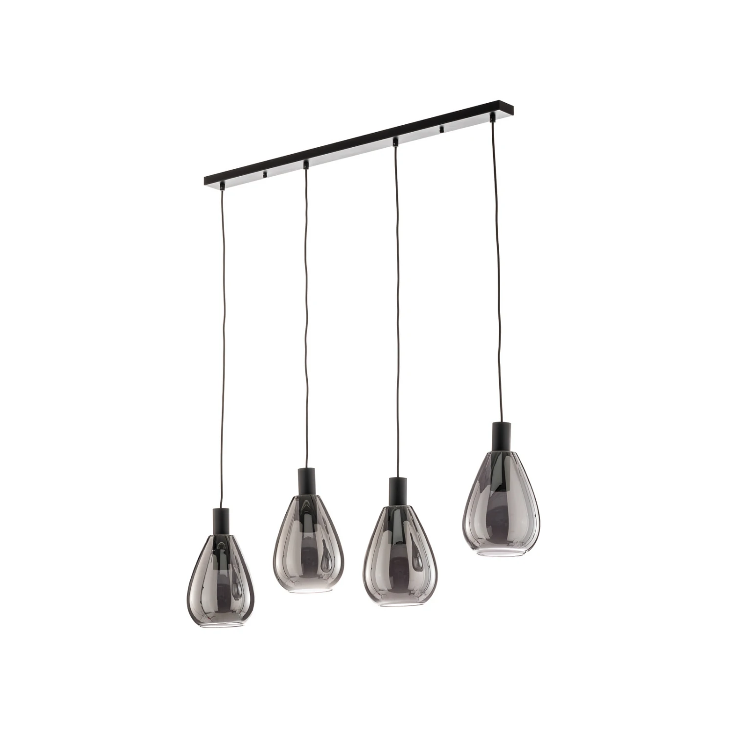 Vierflammige Esszimmer-Pendellampe Marvelos mit bauchigen Rauchglasschirmen
