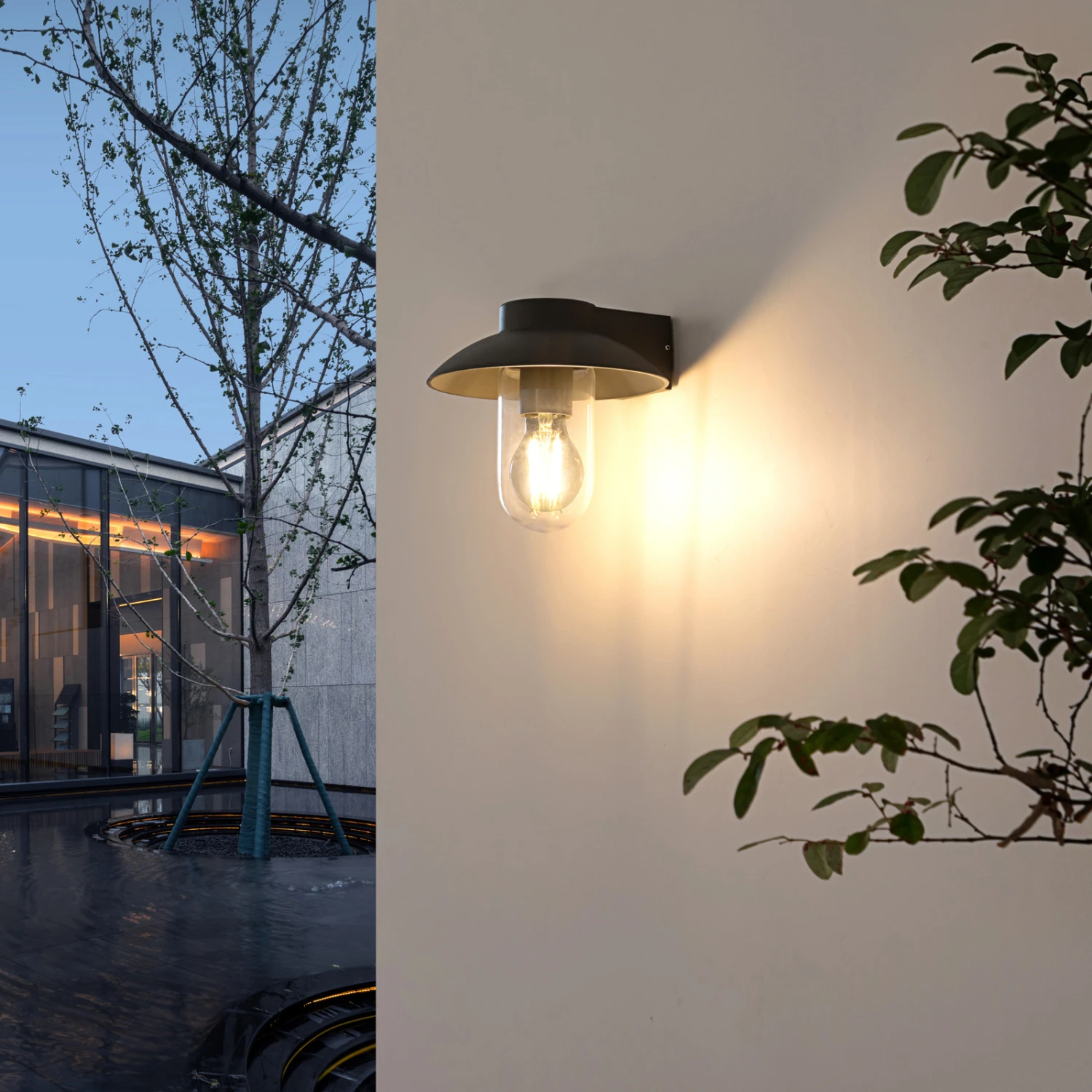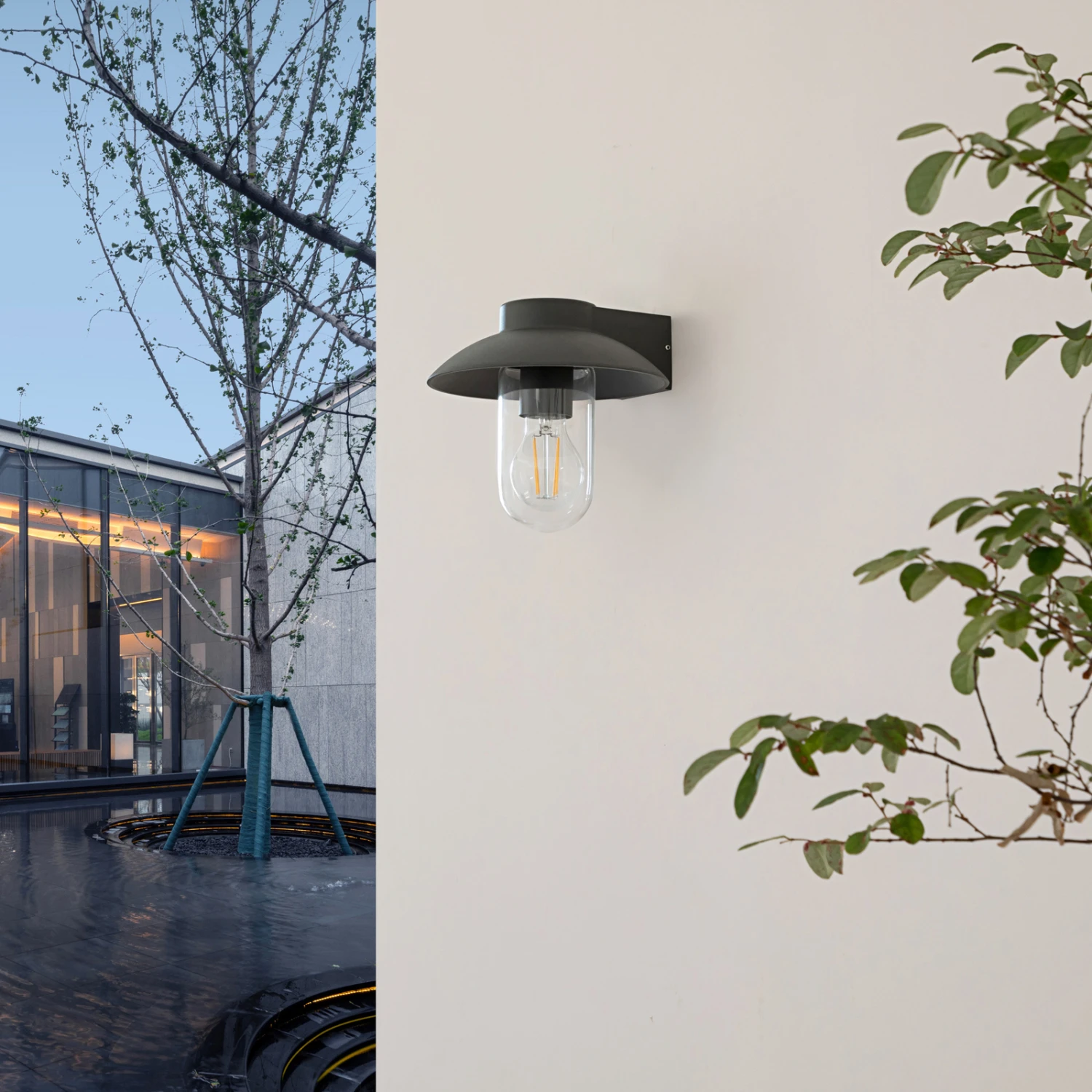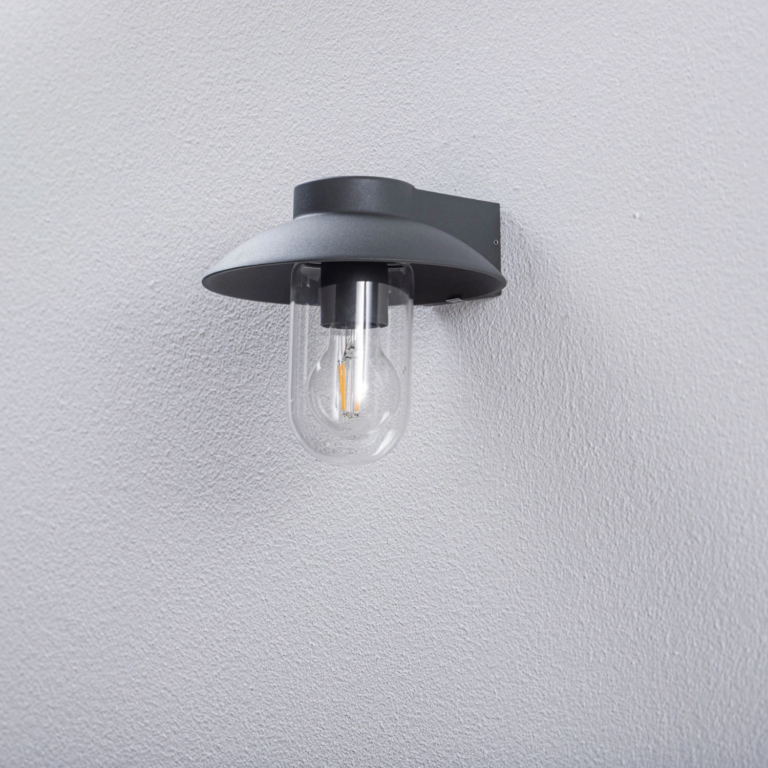 Marvetta besticht mit ihrem besonderen Stil, der sich sofort von der Umgebung abhebt und einen interessanten Charme an die Hauswand zaubert. Das Gehäuse dieser Außenwandleuchte wurde aus Aluminium hergestellt und in einem dunkelgrauen Oberflächenfinish gestaltet. Sie besitzt außerdem eine transparente Schirmabdeckung aus Glas, die eine freie Sicht auf das einzusetzende Leuchtmittel erlaubt. Die Bauform der Leuchte erinnert an einen stilvollen Damenhut und erlaubt es dadurch, Spritzwasser leicht abtropfen zu lassen. Außerdem besitzt Marvetta eine sehr gute Schutzart, die dafür sorgt, dass diese Leuchte der Witterung langfristig standhalten kann.