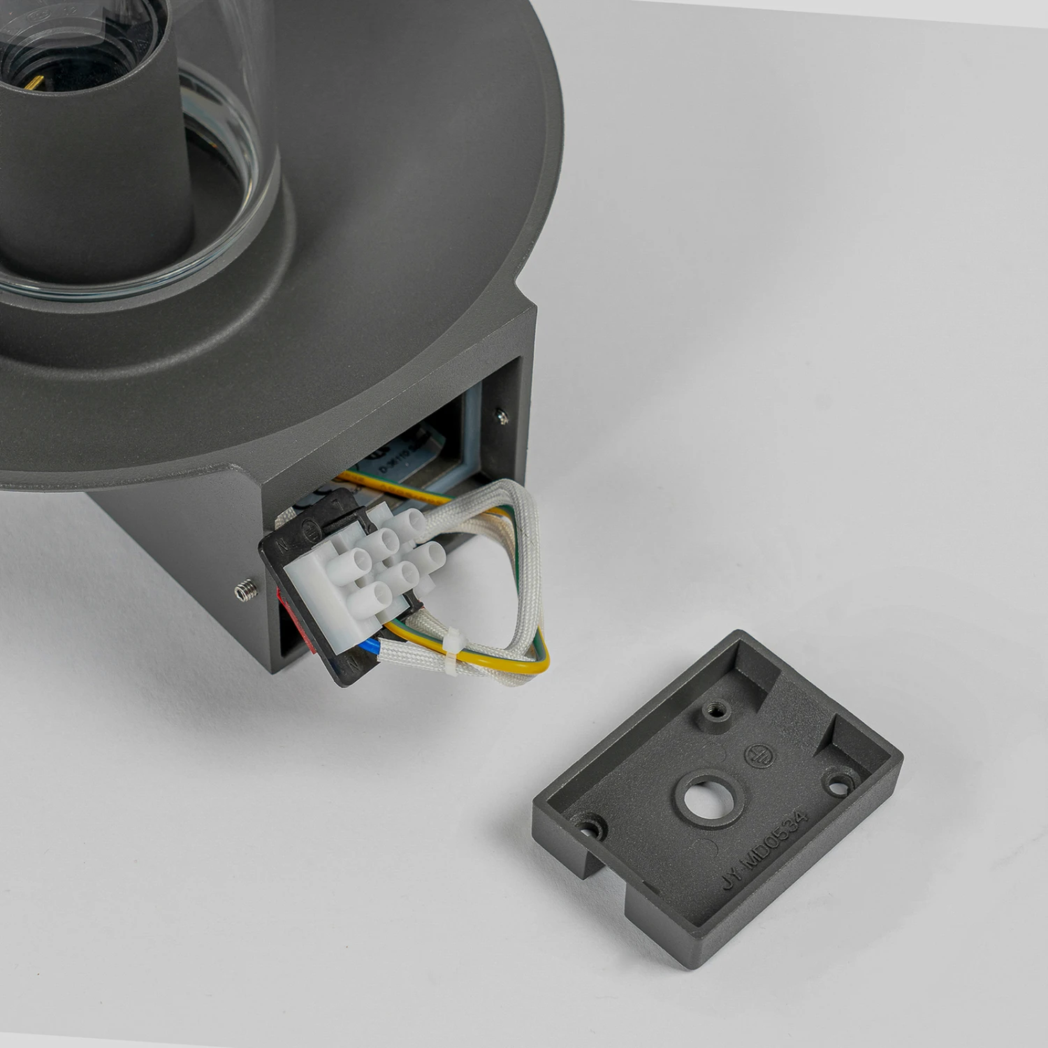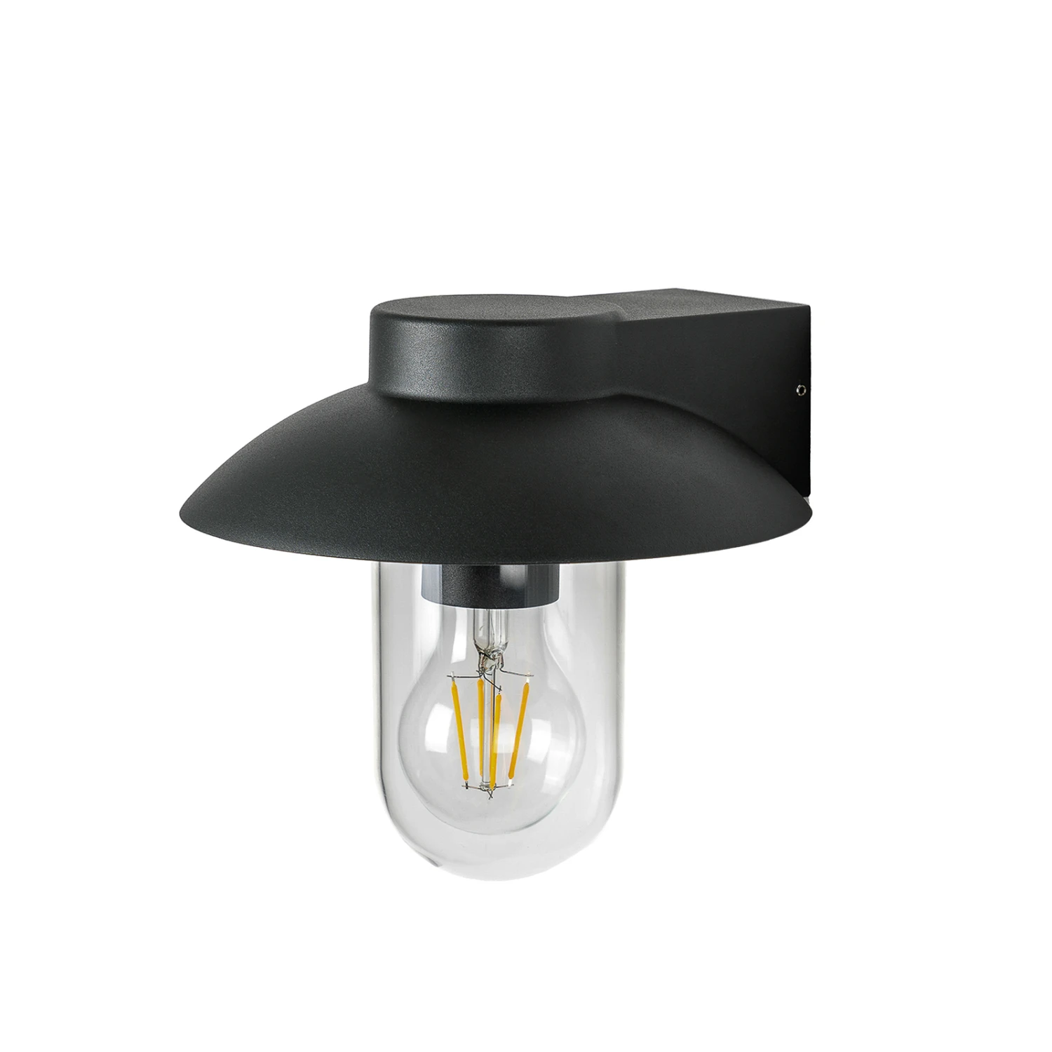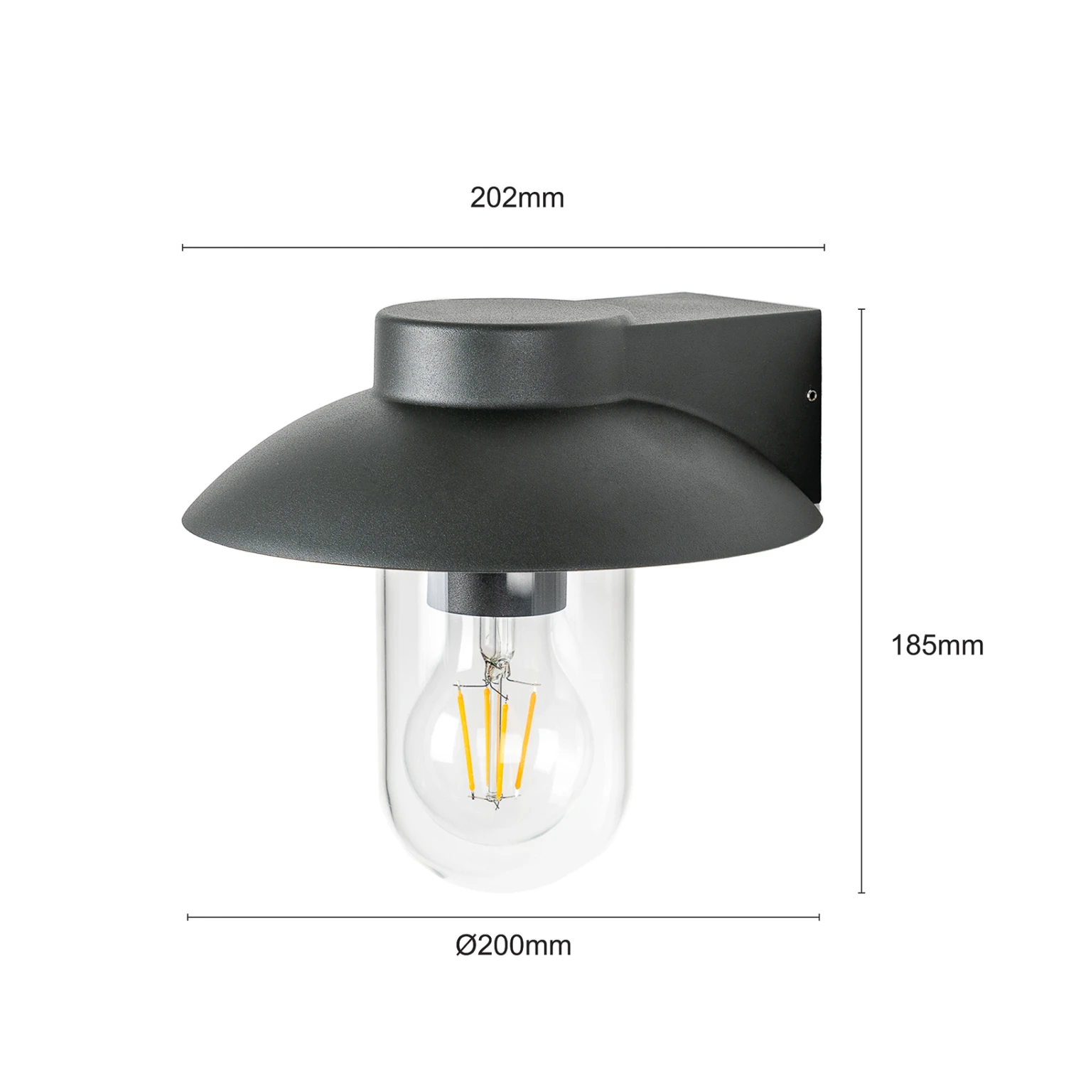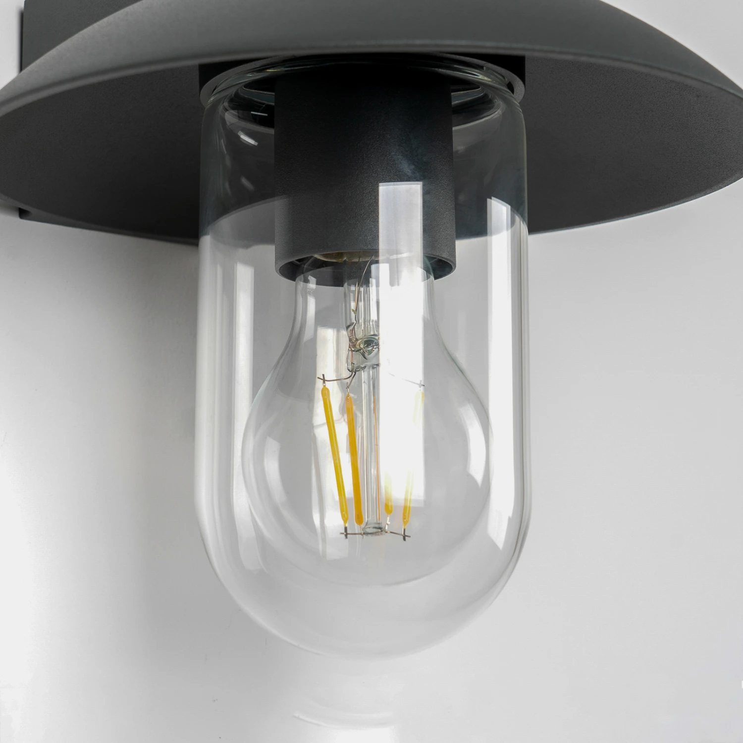 Marvetta besticht mit ihrem besonderen Stil, der sich sofort von der Umgebung abhebt und einen interessanten Charme an die Hauswand zaubert. Das Gehäuse dieser Außenwandleuchte wurde aus Aluminium hergestellt und in einem dunkelgrauen Oberflächenfinish gestaltet. Sie besitzt außerdem eine transparente Schirmabdeckung aus Glas, die eine freie Sicht auf das einzusetzende Leuchtmittel erlaubt. Die Bauform der Leuchte erinnert an einen stilvollen Damenhut und erlaubt es dadurch, Spritzwasser leicht abtropfen zu lassen. Außerdem besitzt Marvetta eine sehr gute Schutzart, die dafür sorgt, dass diese Leuchte der Witterung langfristig standhalten kann.