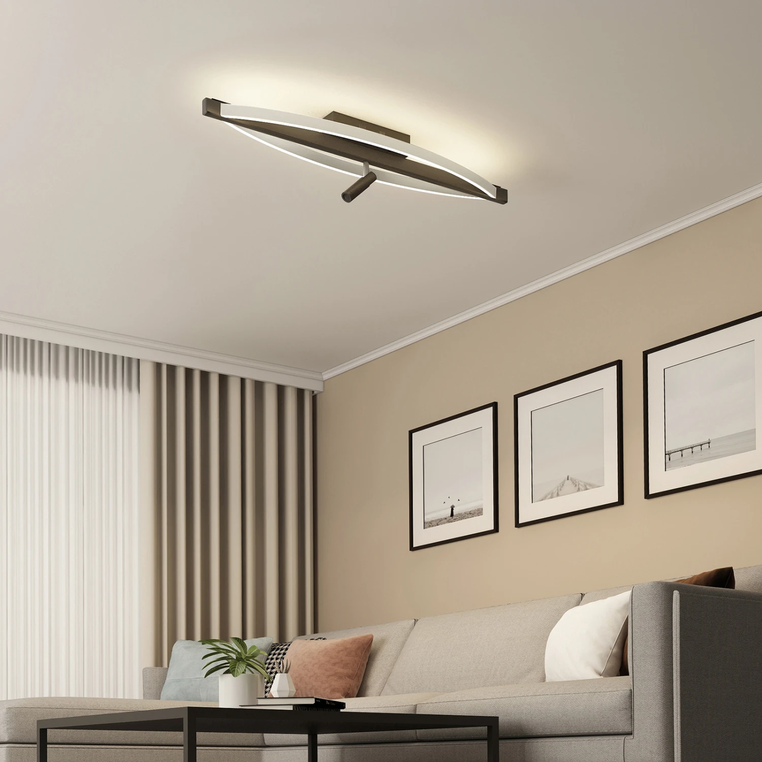 Funktionsorientierte LED-Deckenleuchte Matwei in einem edlen Design punktet mit einem beweglichen Spot