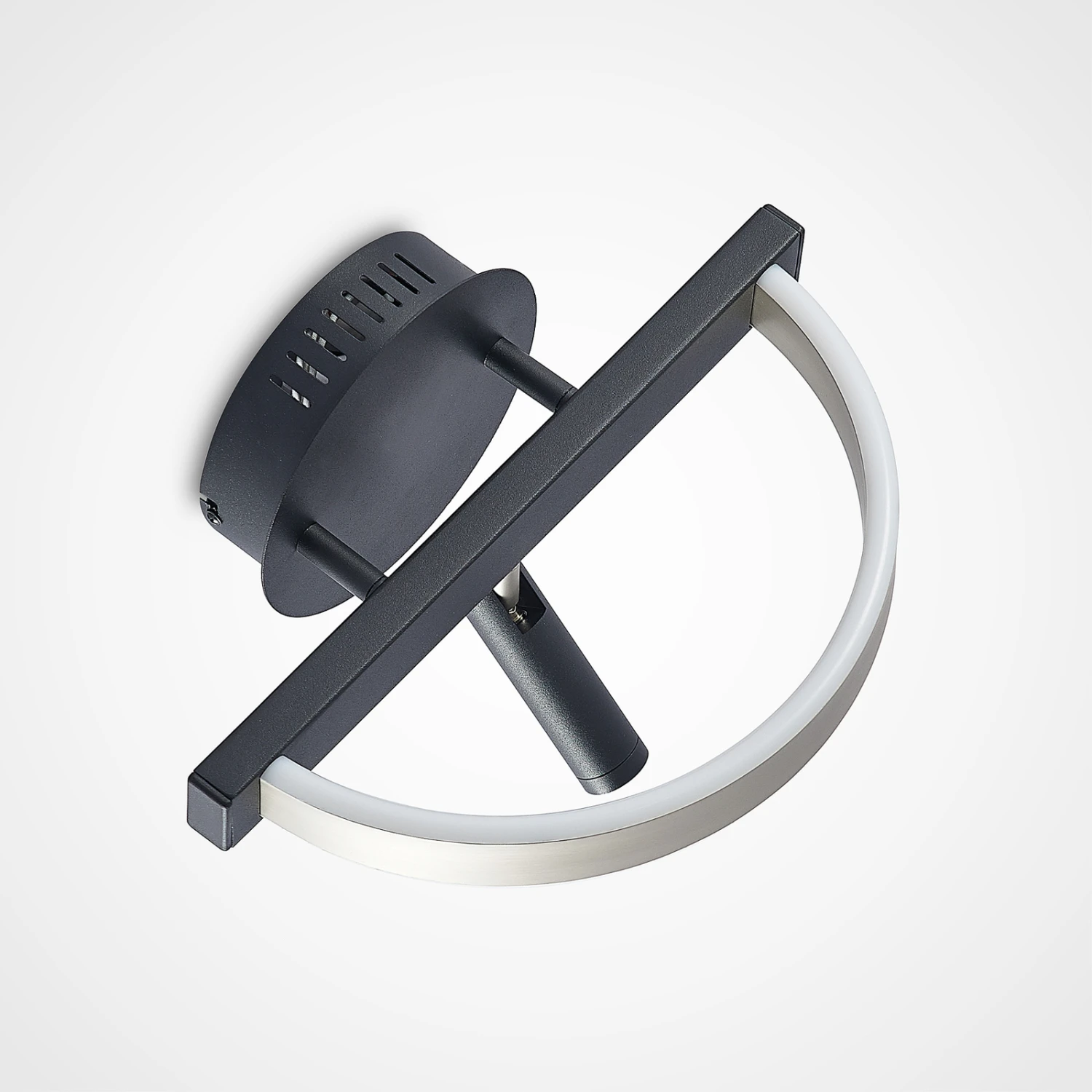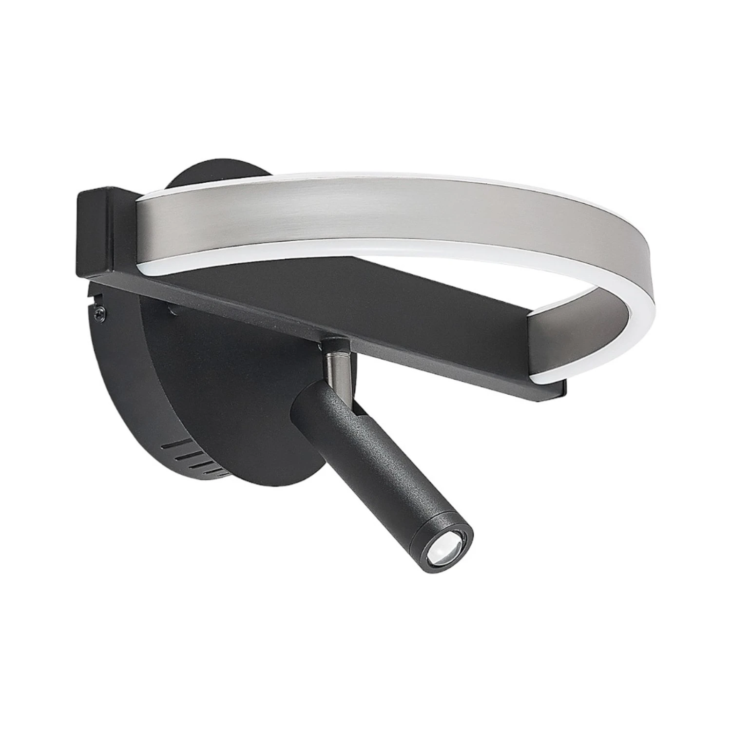 Die LED-Wandleuchte Matwei überrascht mit einem gelungenen Mix aus erstklassigem Design und Funktionalität. Hergestellt aus robustem Eisen, bietet das Gestell mit schwarz-mattem Finish eine gewisse Solidität. Den optischen Kontrast dazu setzt der filigrane Leuchtring in edlem Nickel, welcher beinahe zu schweben scheint und deshalb etwas Leichtigkeit in das Gesamtkonzept bringt.